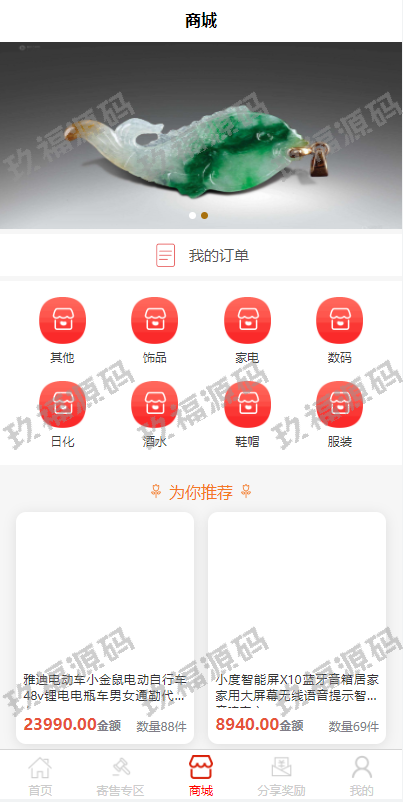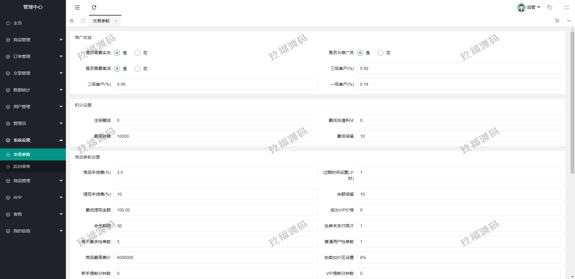玩法简介 ①、后台可添加商品进行挂单 ②、后台设置场次以及场次开始时间 ③、用户抢单 ④、抢单以后可选择提货或者转售 ⑤、玩家寄售需按照后台设置百分比进行加价 ⑥、玩家寄售需支付手续费(余额支付、支付宝APP支付、支付宝H5支付、微信APP支付) ⑦、玩家提货可获得商品相应价值积分,可在积分商城党换商品