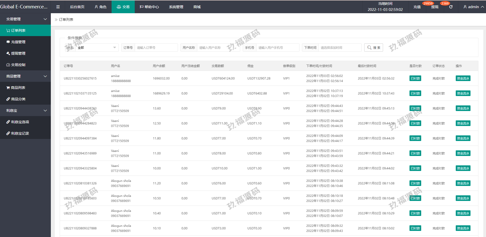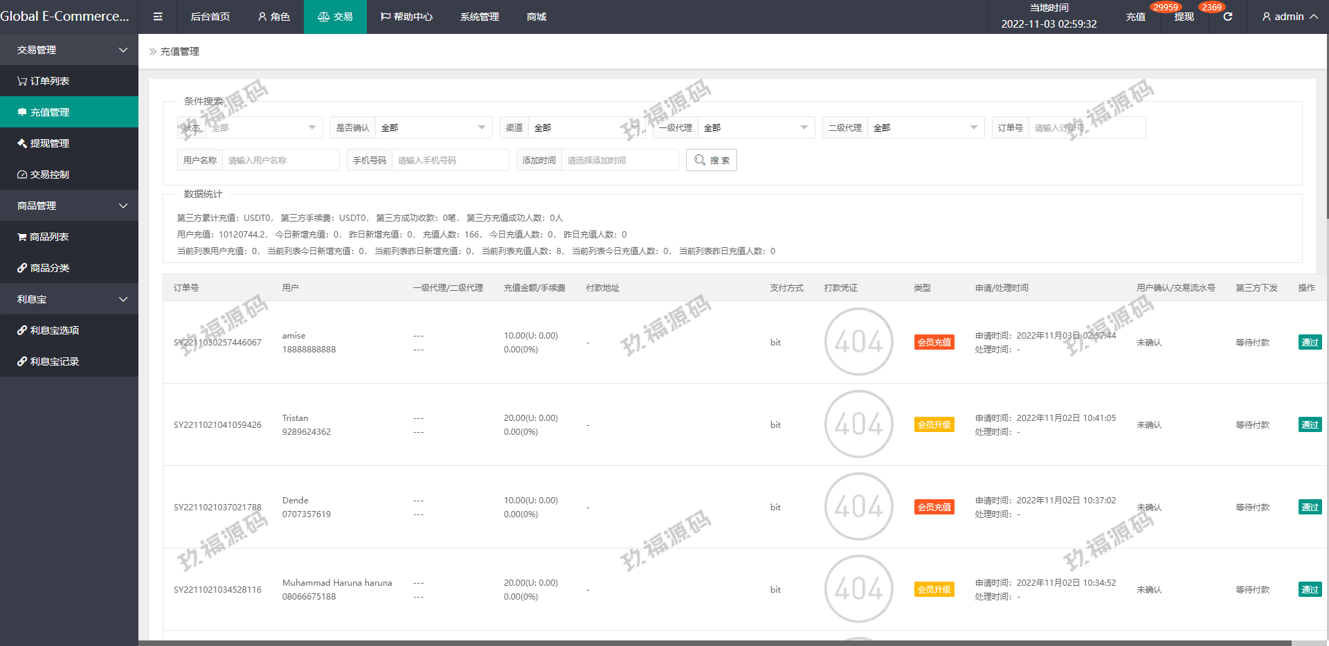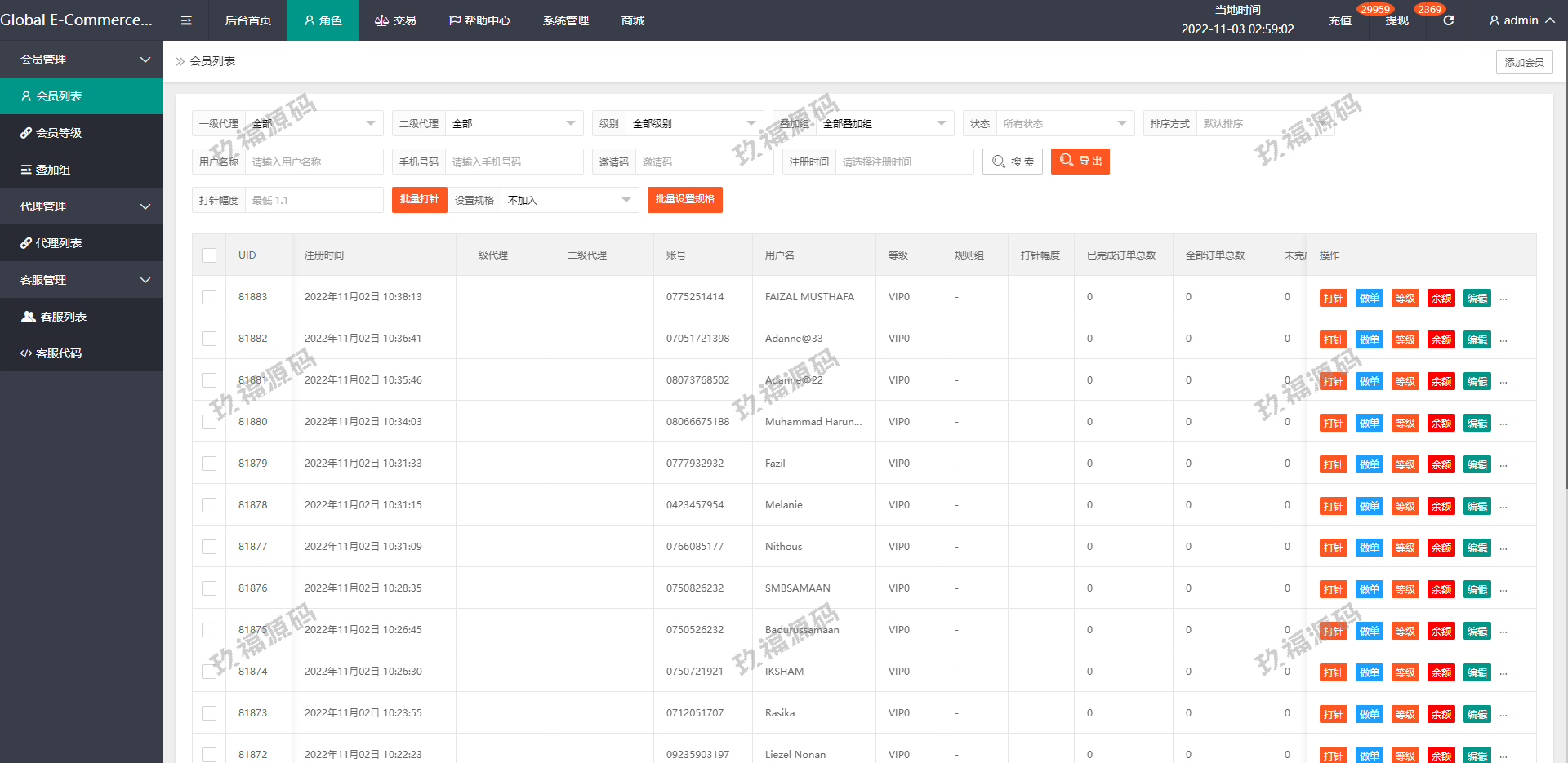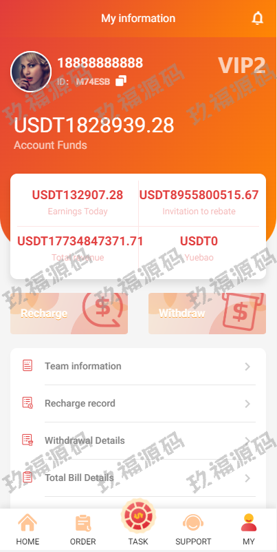 5.三级分销,带客服,等级优先,充值提现优先完美后台查询功能