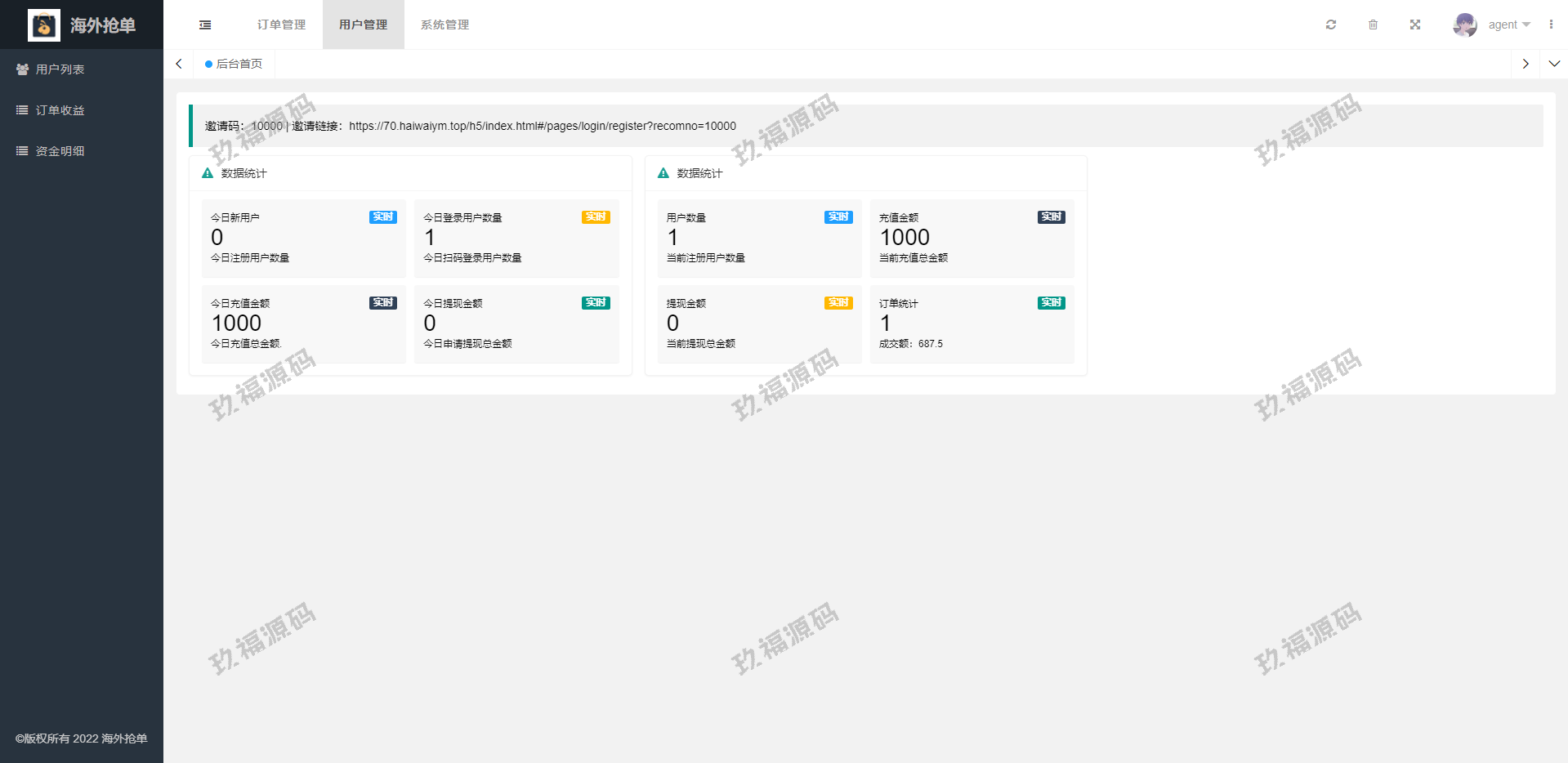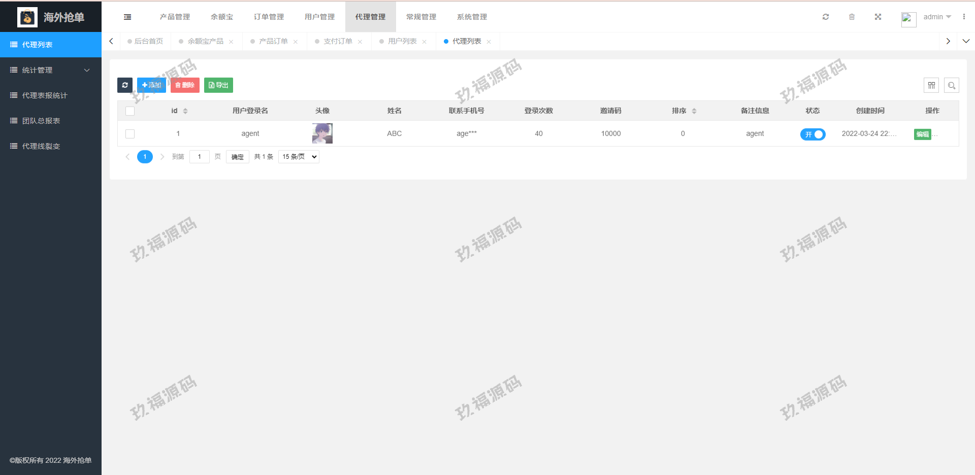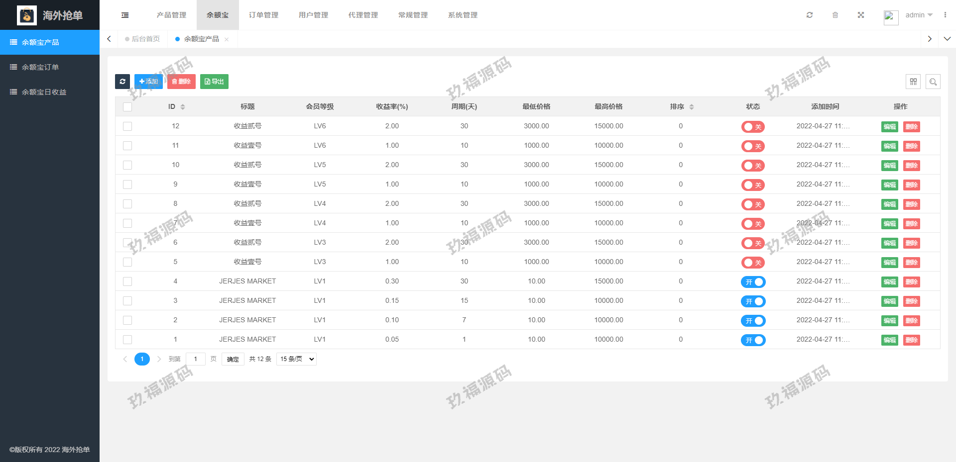 系统基本符合市场需求,单独的代理后台、余利宝等功能