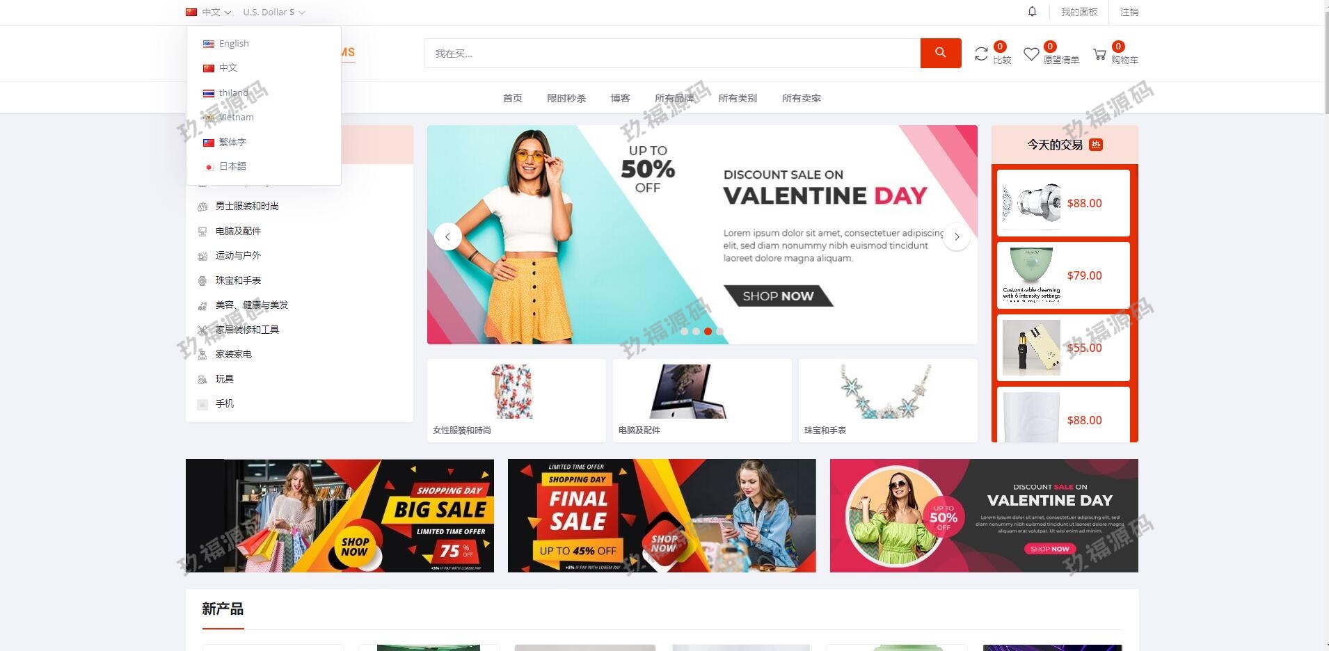 多语言玖福电商系统,前端多种语言切换,支持后台添加任意语言