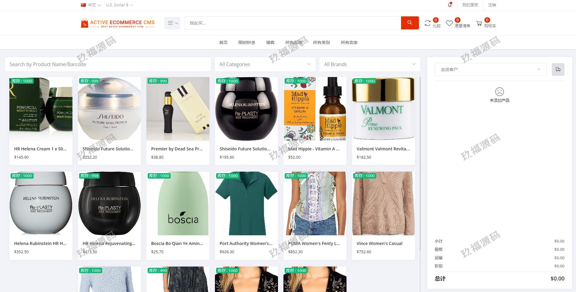 系统支持支持商家入驻上架销售产品, 支持多种支付, 支持多规格商品