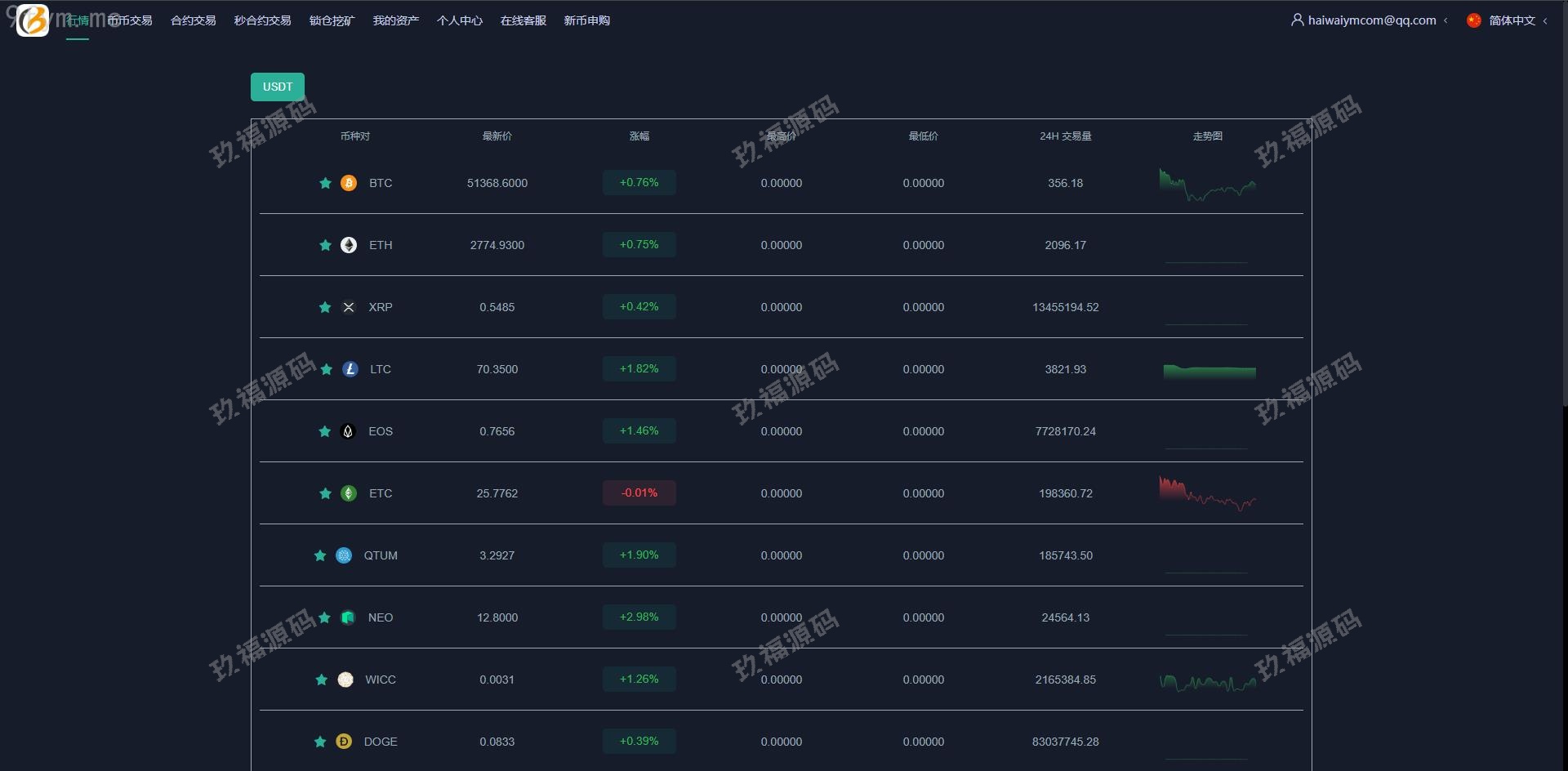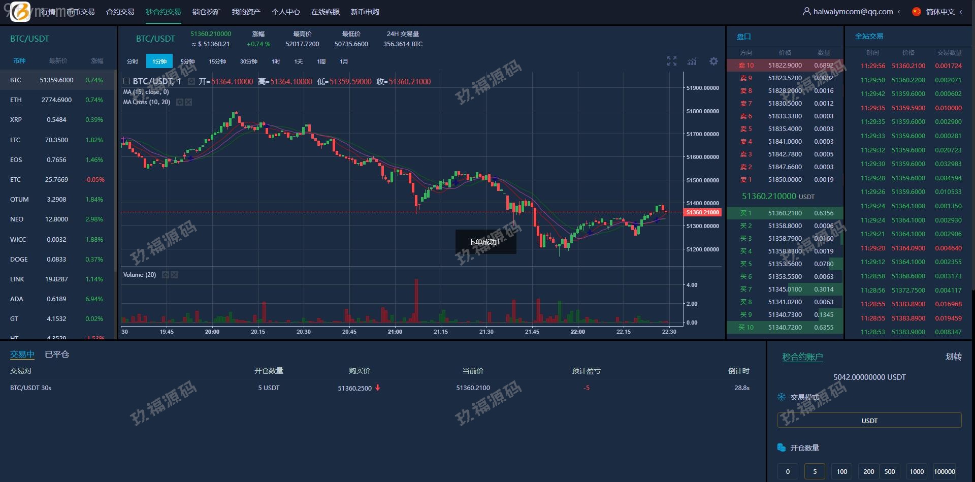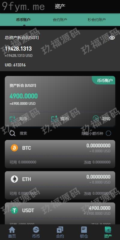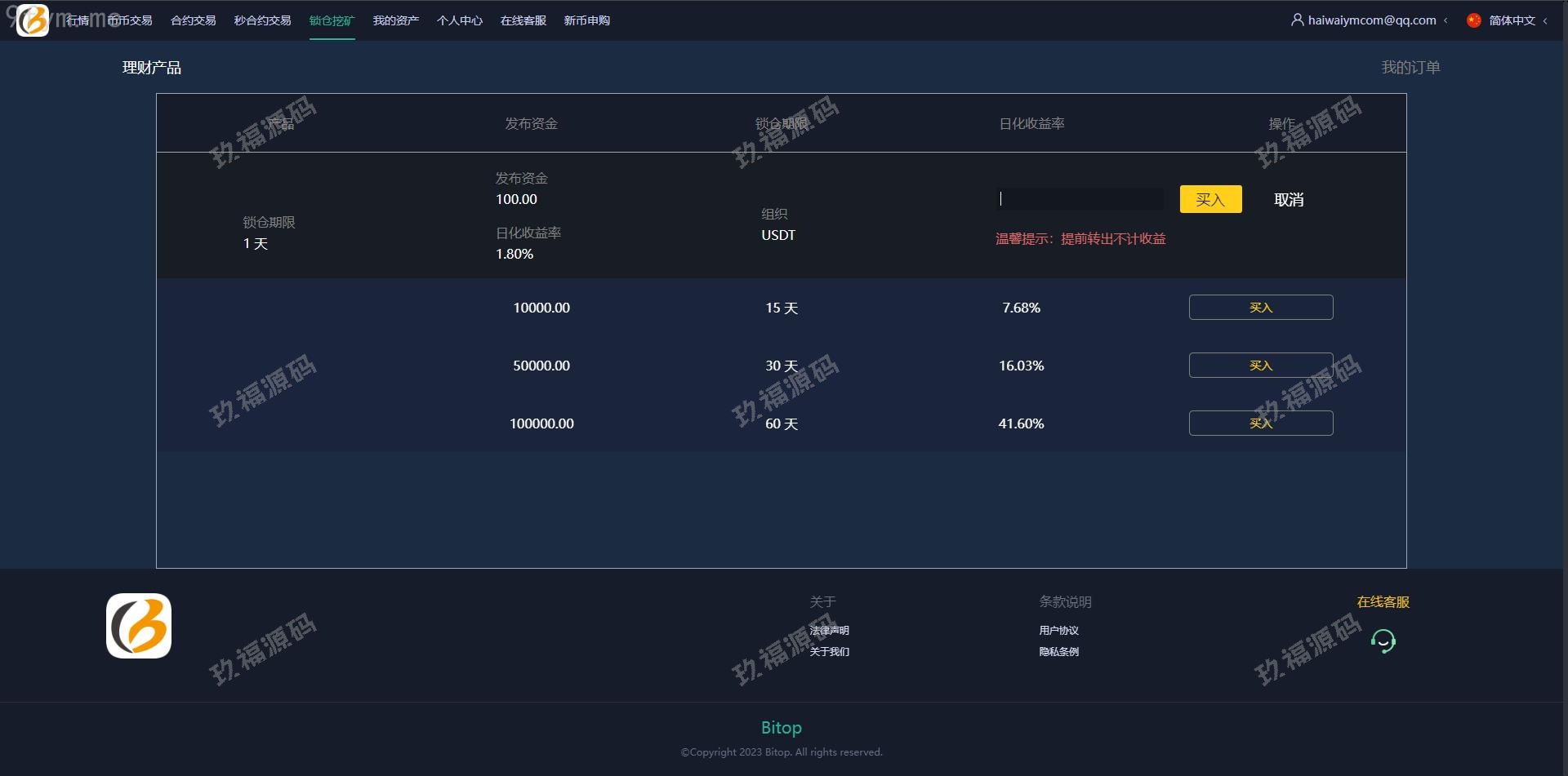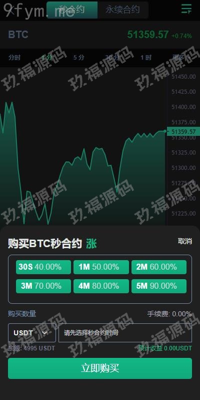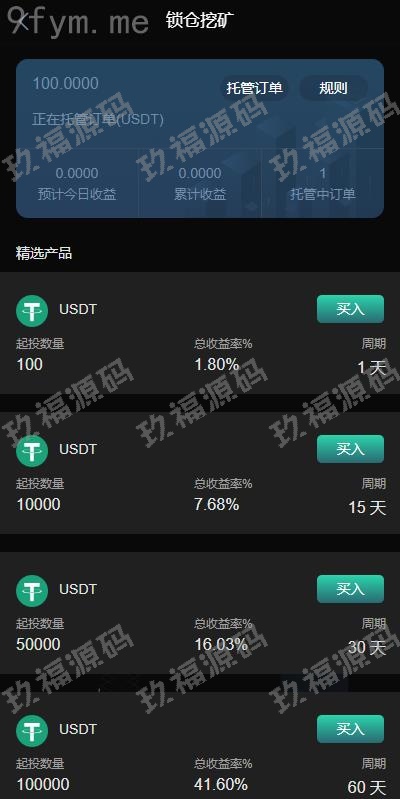系统功能支持:秒合约、合约、锁仓挖矿、新币认购功能,无平台币