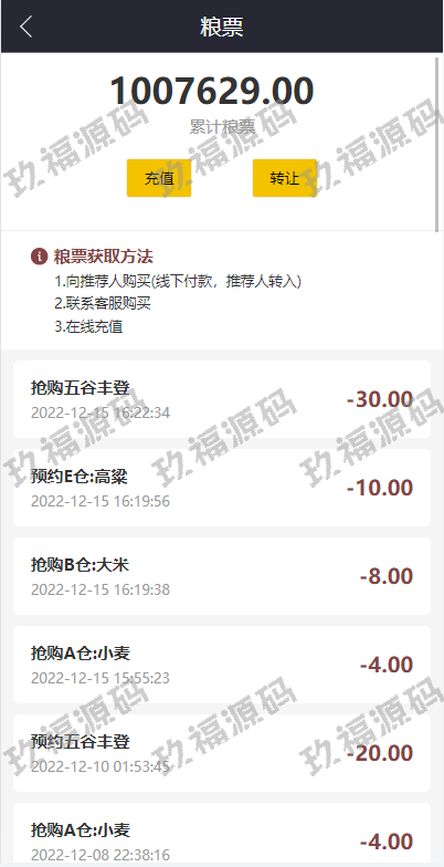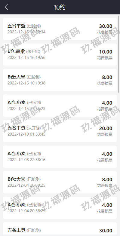 每天抢购交易时间分5个时段,在每个规定时间段内,抢到则能下单,抢不到只能等下一轮,抢不到退回预约粮票。