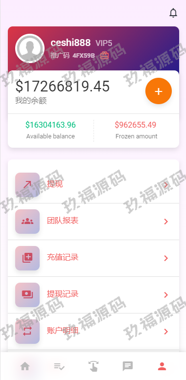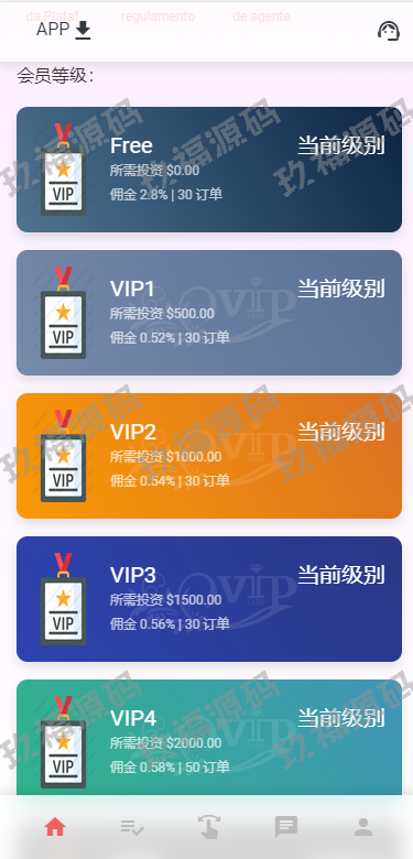 此套系统在原有基础上新增多个功能 1.已经完成的订单可以强制冻结,并自己设定冻结时间。 2.后台可以设置用户为手动派单状态,该状态只能后台给用户手动派单,如果没有派单的情况下,就提示当前无订单匹配,请稍后尝试。后台给用户派单可以设置一单或者多单,多单的时候必须同时完成才能返回本金跟佣金。 3.充值请联系客服 提现不需要联系客服 用户自己提现 4.连单余额不足的时候显示连单中 余额不足 请联系客服充值 5.设置连单的 需要调整为用户在自动状态也能抢单 6.后台添加余额的改成添加真实余额 添加虚拟余额 虚拟余额不统计到报表 7.会员列表新增总充值 多语言商城返利返佣投资理财派单自带余额宝,