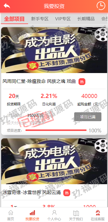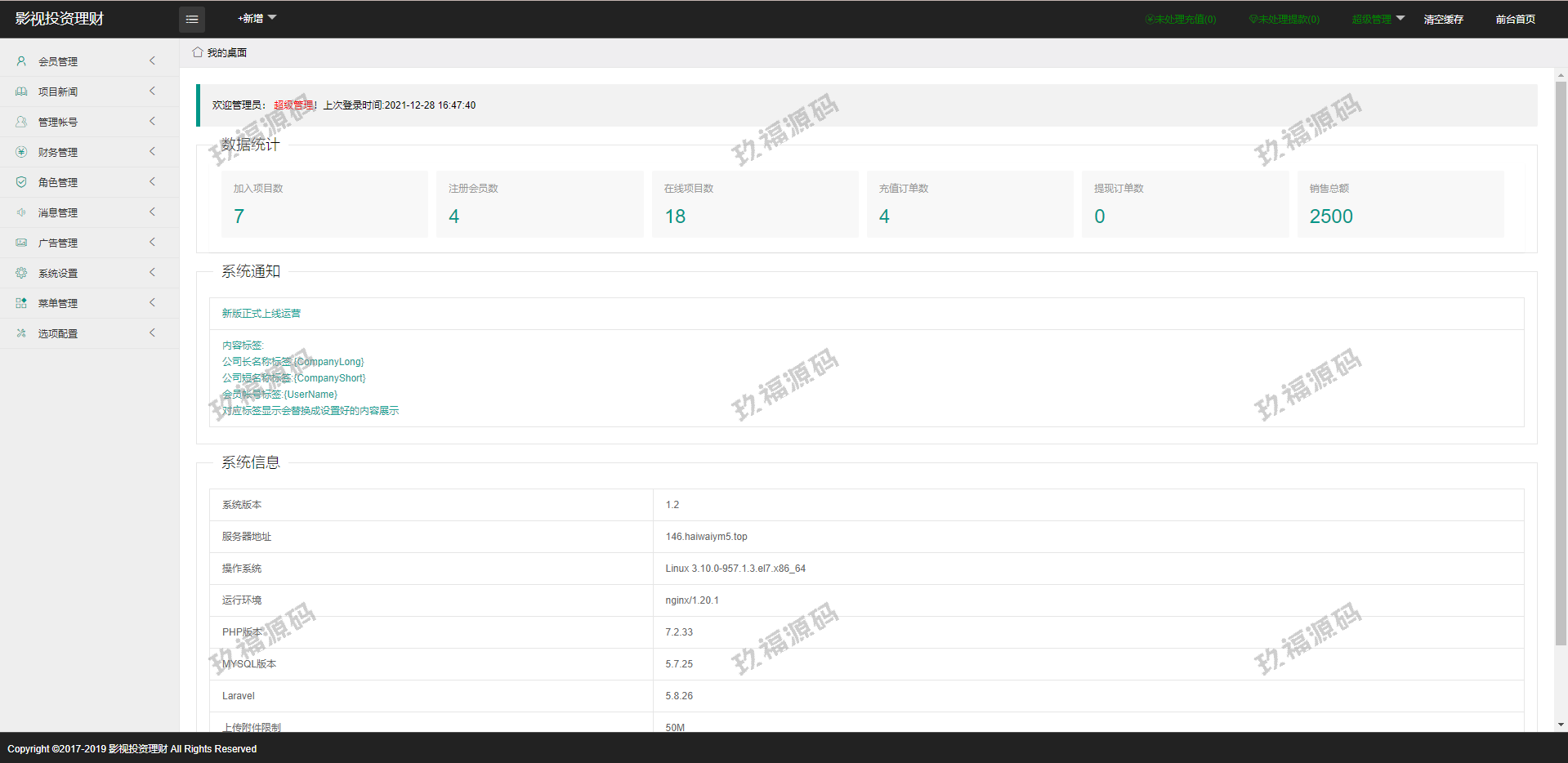 这套算是比较经典的影视众筹投资系统,后端laravel5框架