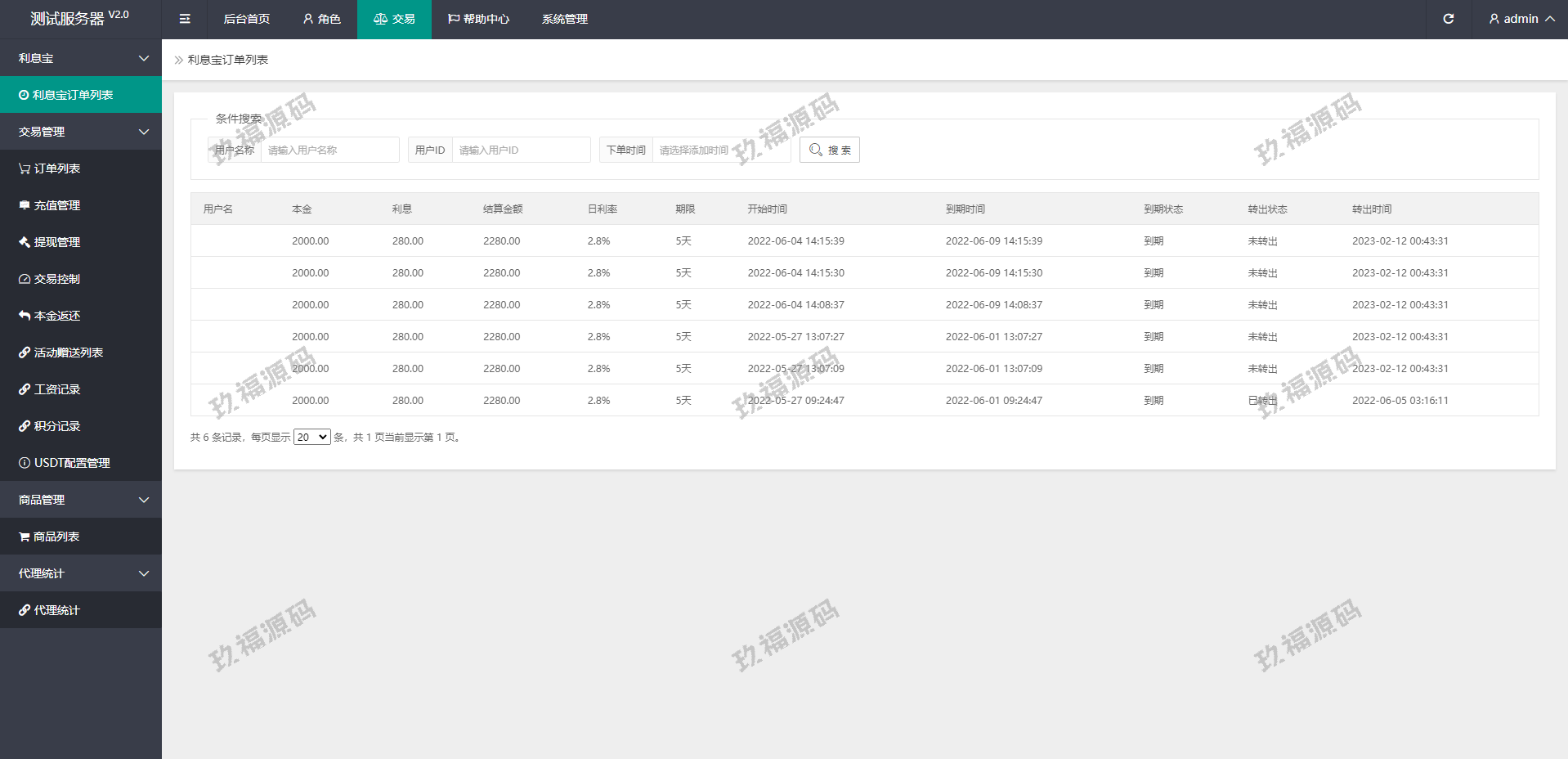 系统支持usdt充值提现,支持余额宝投资项目,后端二开活动奖励、超级登录等一些小功能
