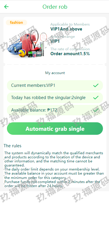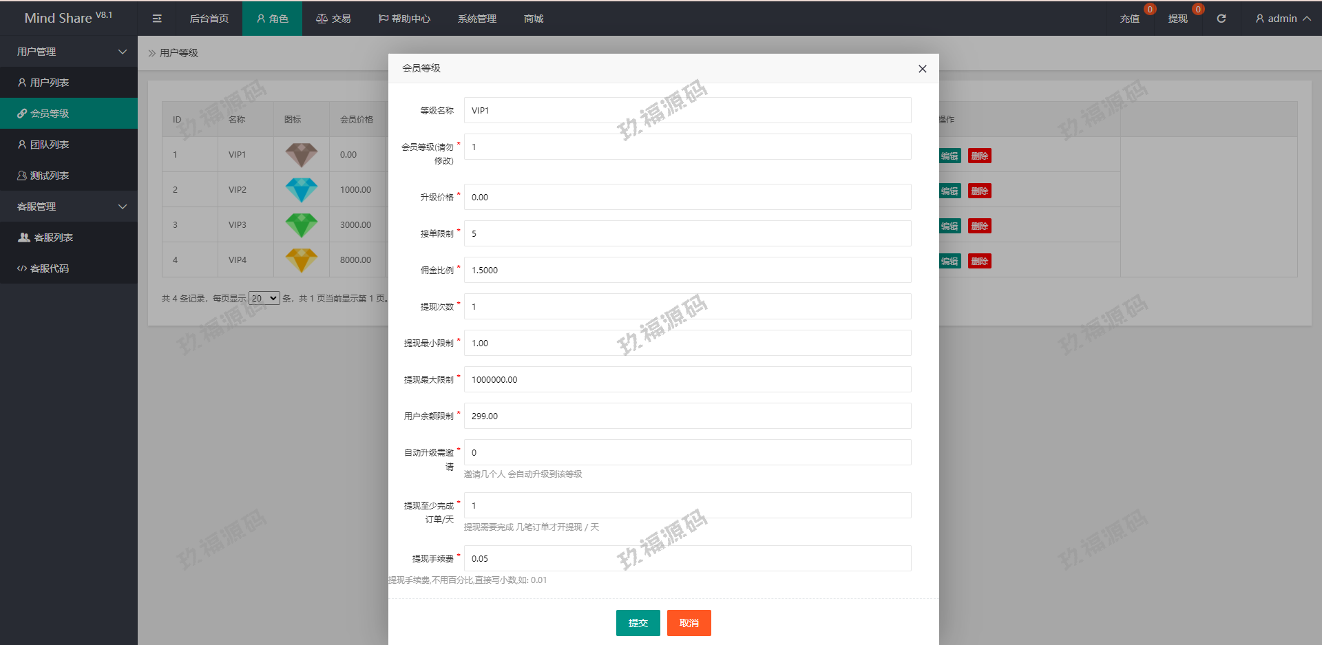 经典版的抢单刷单系统,后台单纯的会员等级抢单控制