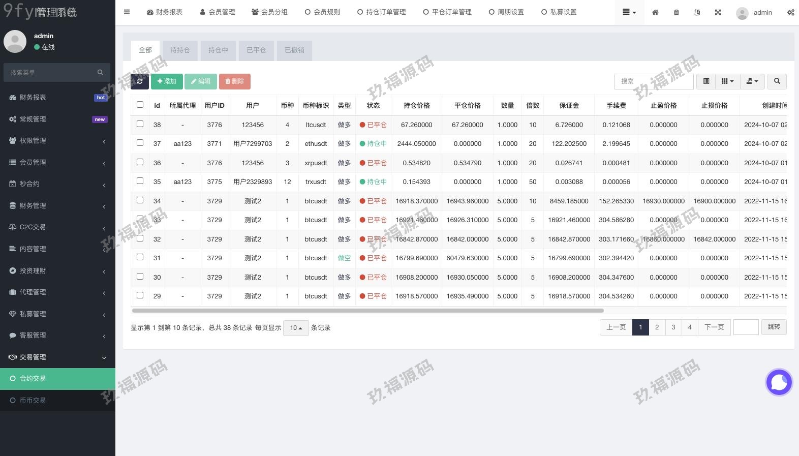 系统功能很全功能支持:币币交易、合约交易、秒合约交易、c2c、认购、理财等