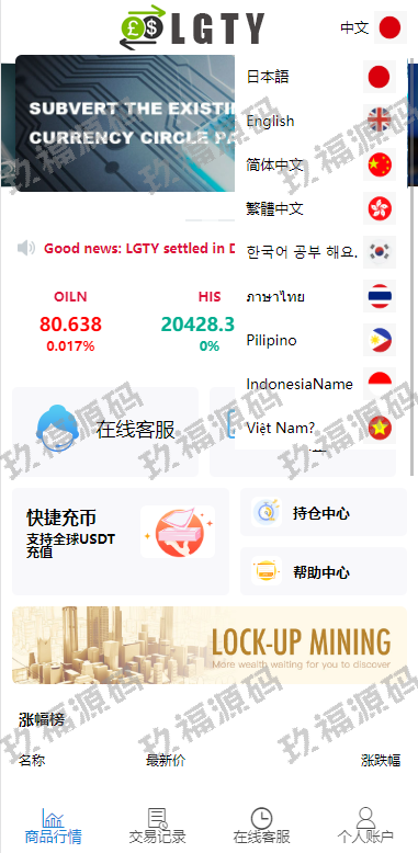 此套系统是别人二开仿交易所的UI,前端九种语言