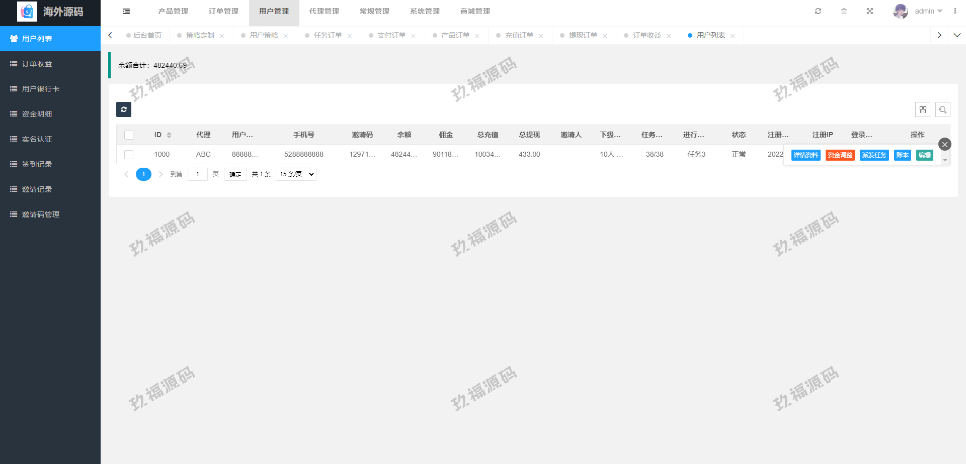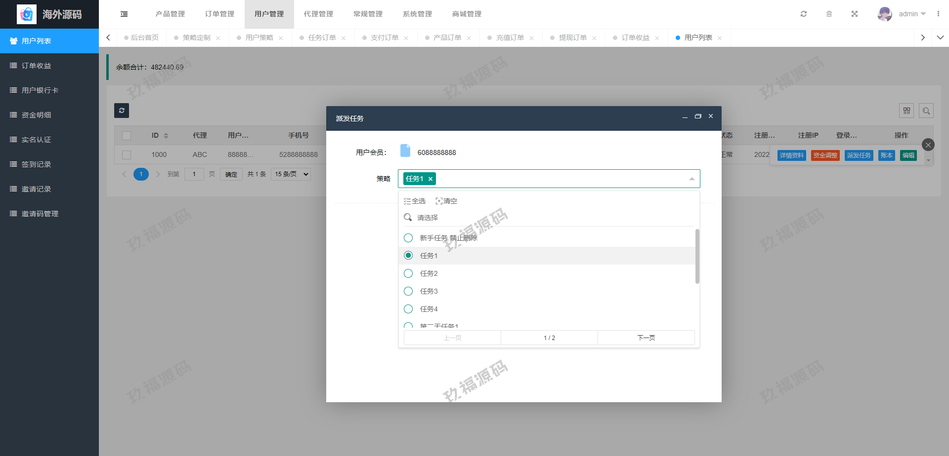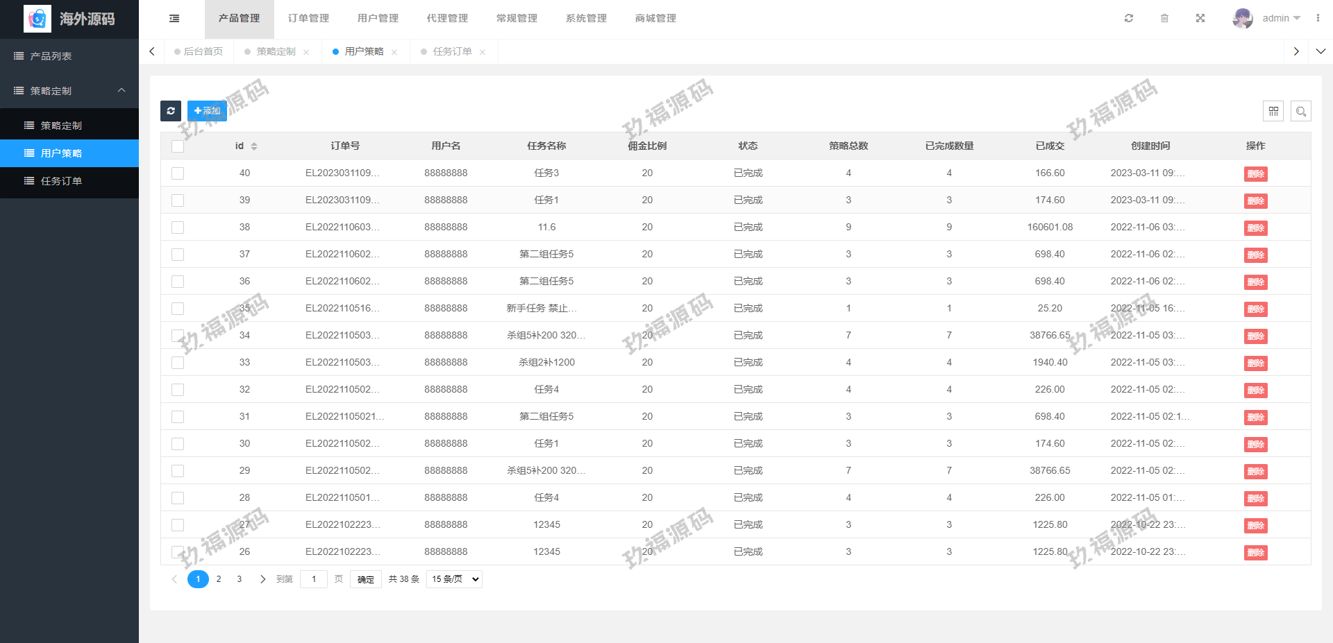 支持用户策略定制在线派单,系统基本符合市场需求,单独的代理后台等功能