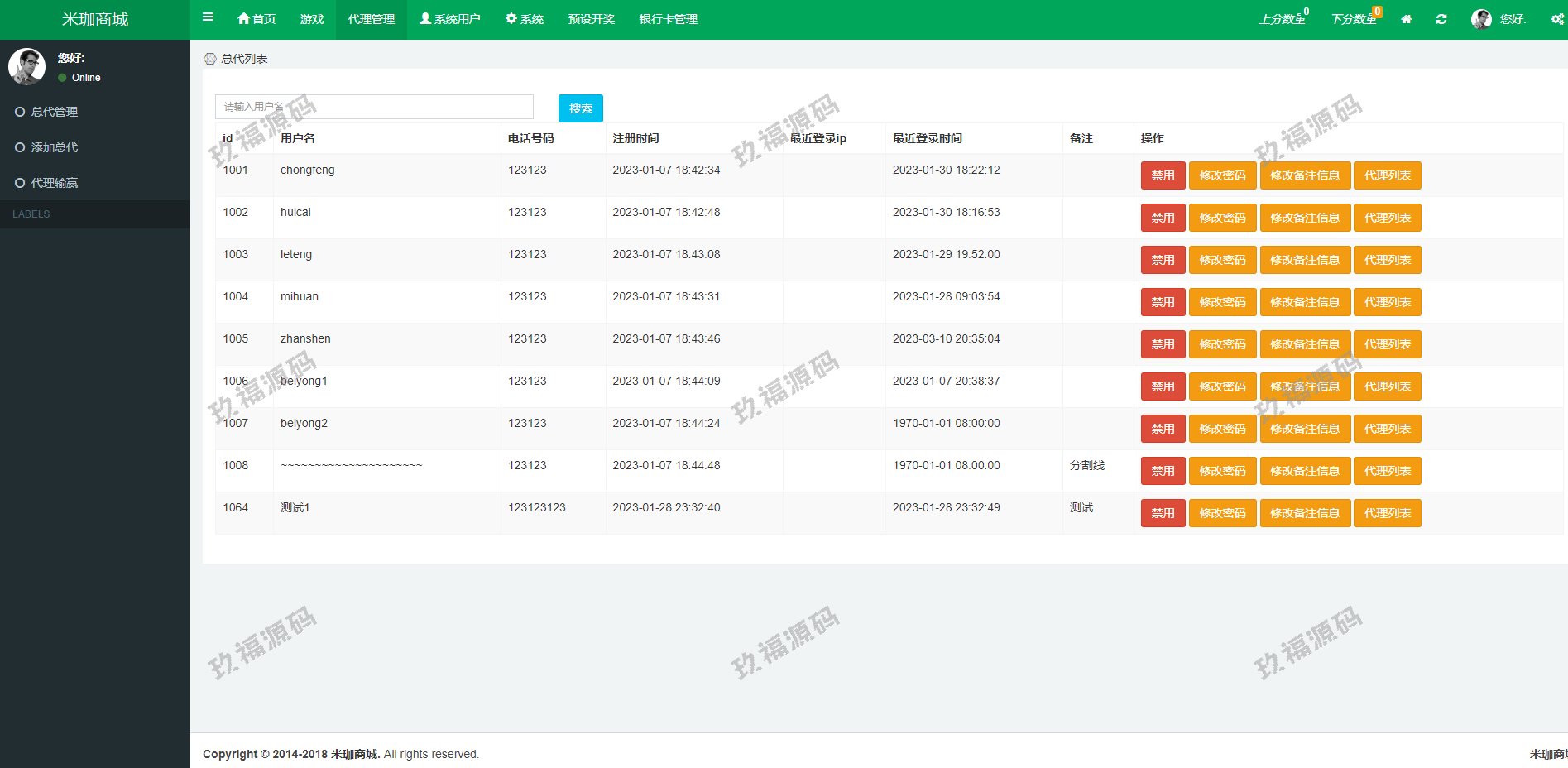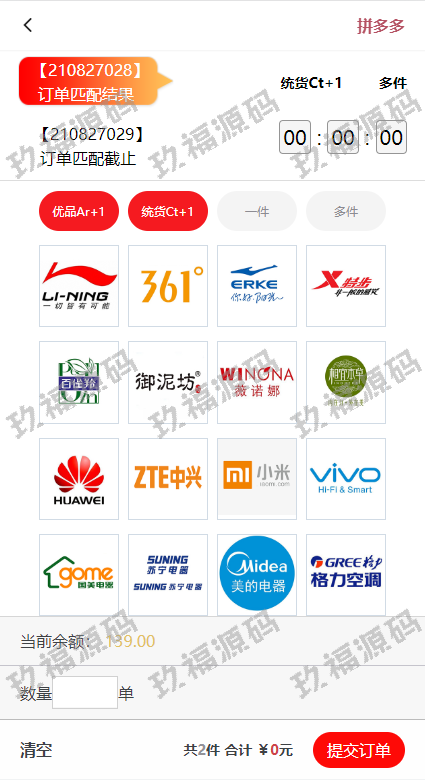 一套算是二开的伪商城刷单系统,带代理后台跟预设