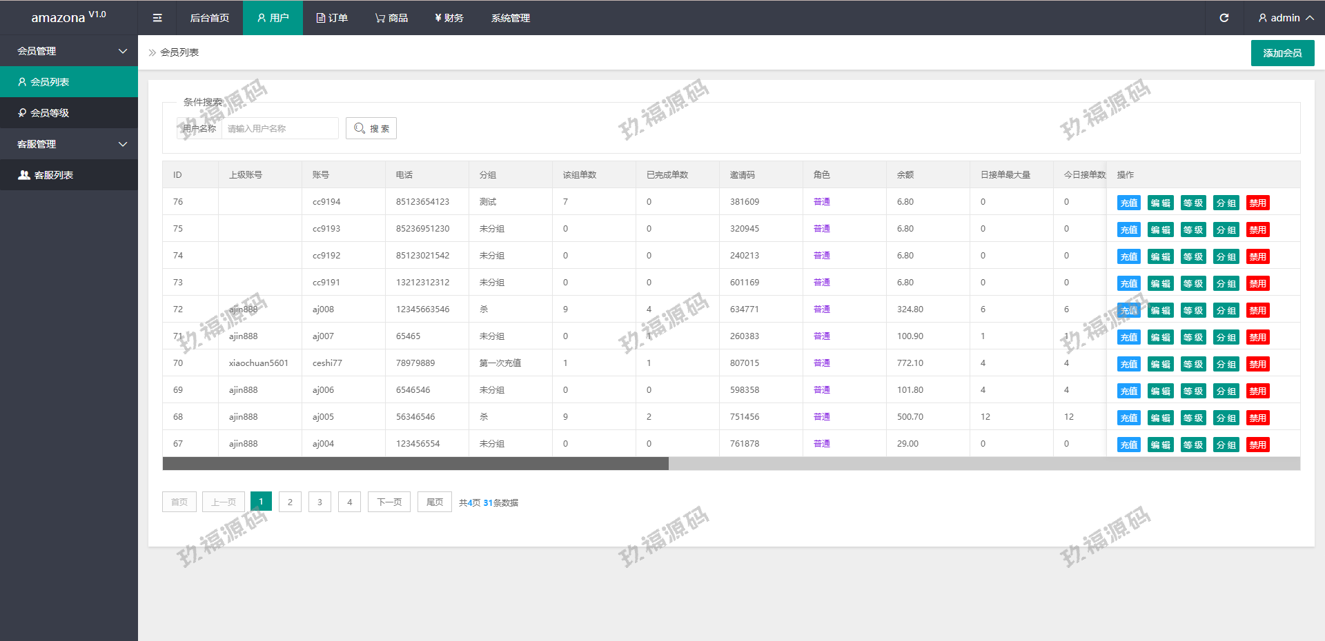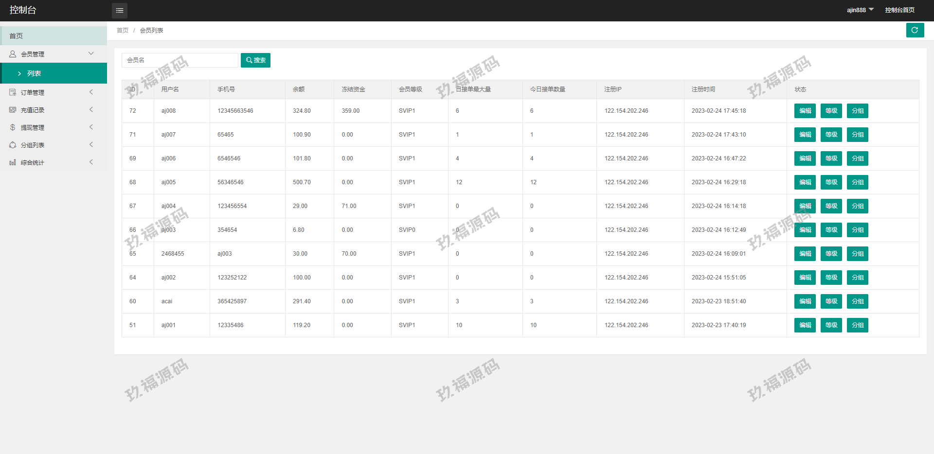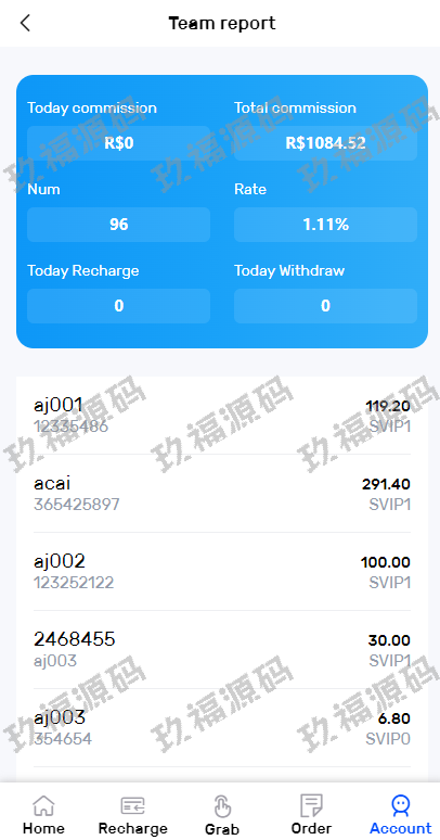 系统附带单独的代理后台,邀请功能-可自建团队,获得更多佣金,升级会员等
