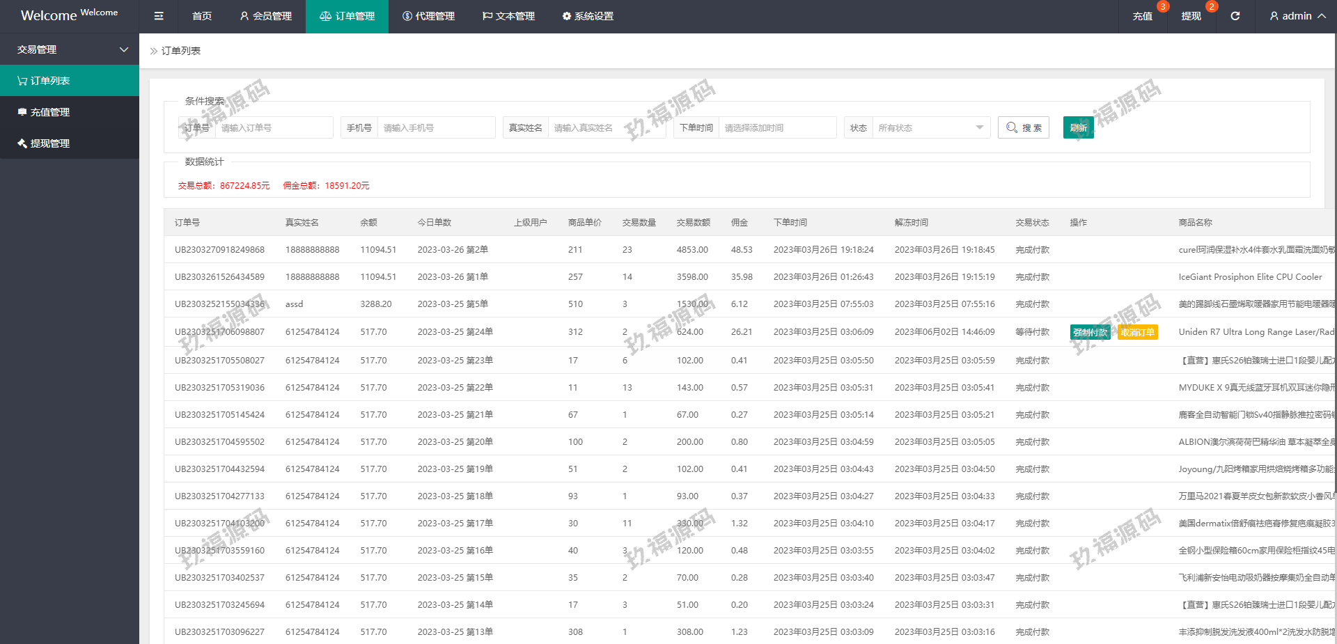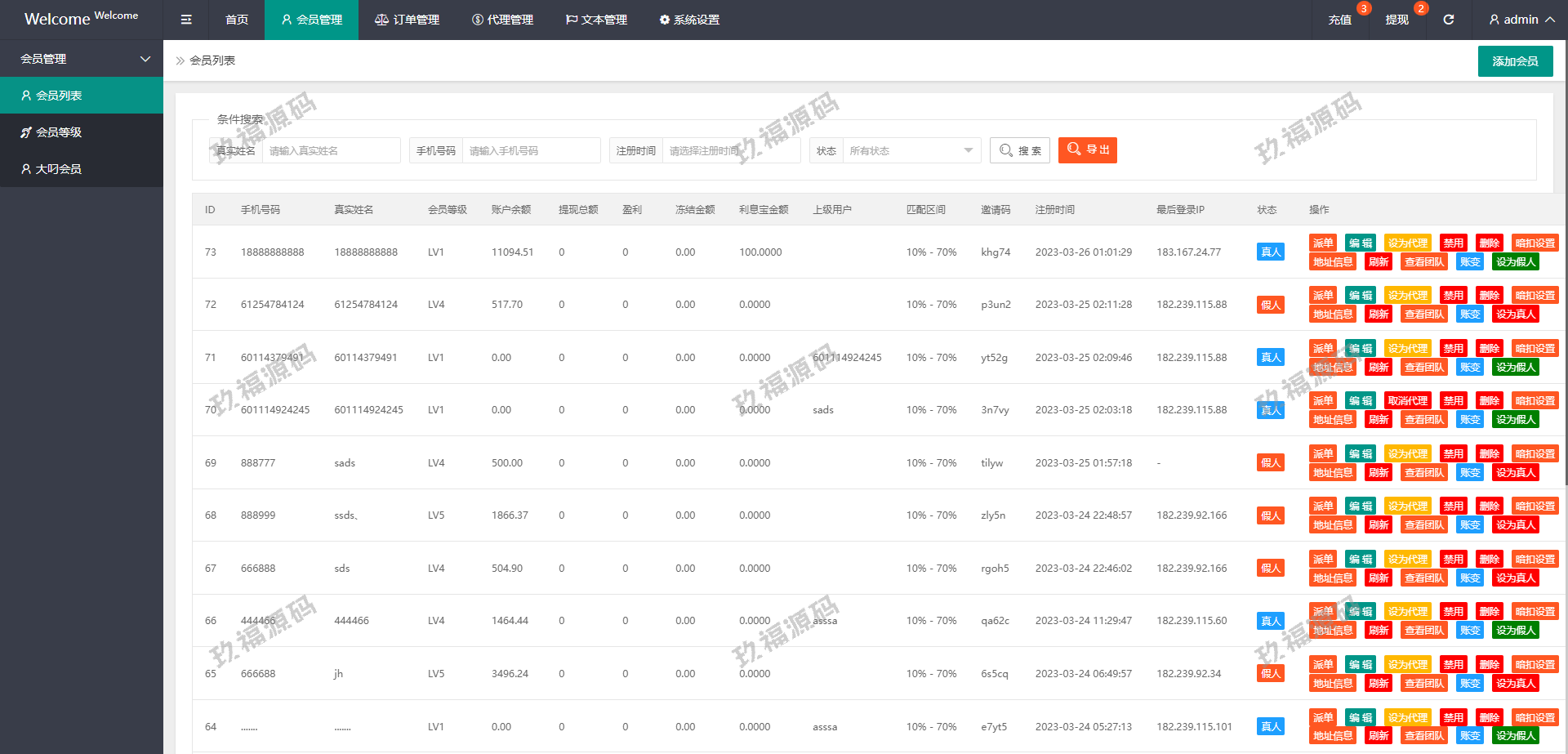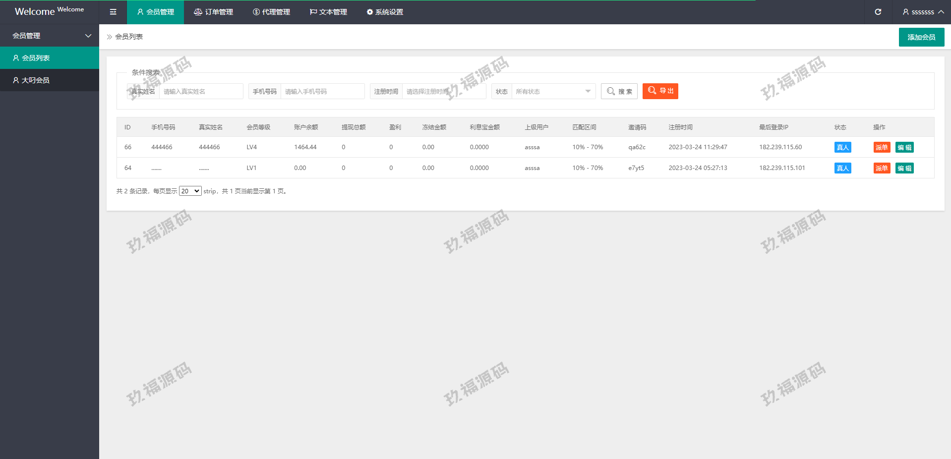 系统支持派单、分组、余额宝、代理后台等功能