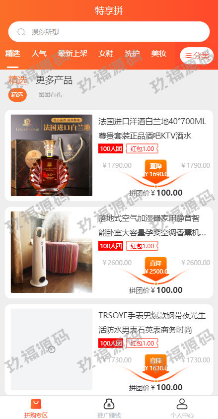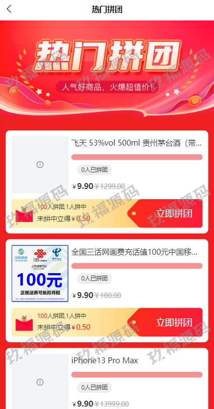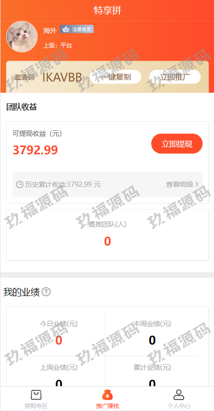 Uniapp拼团系统 拼团红包返利系统 拼拼有礼拉新商城