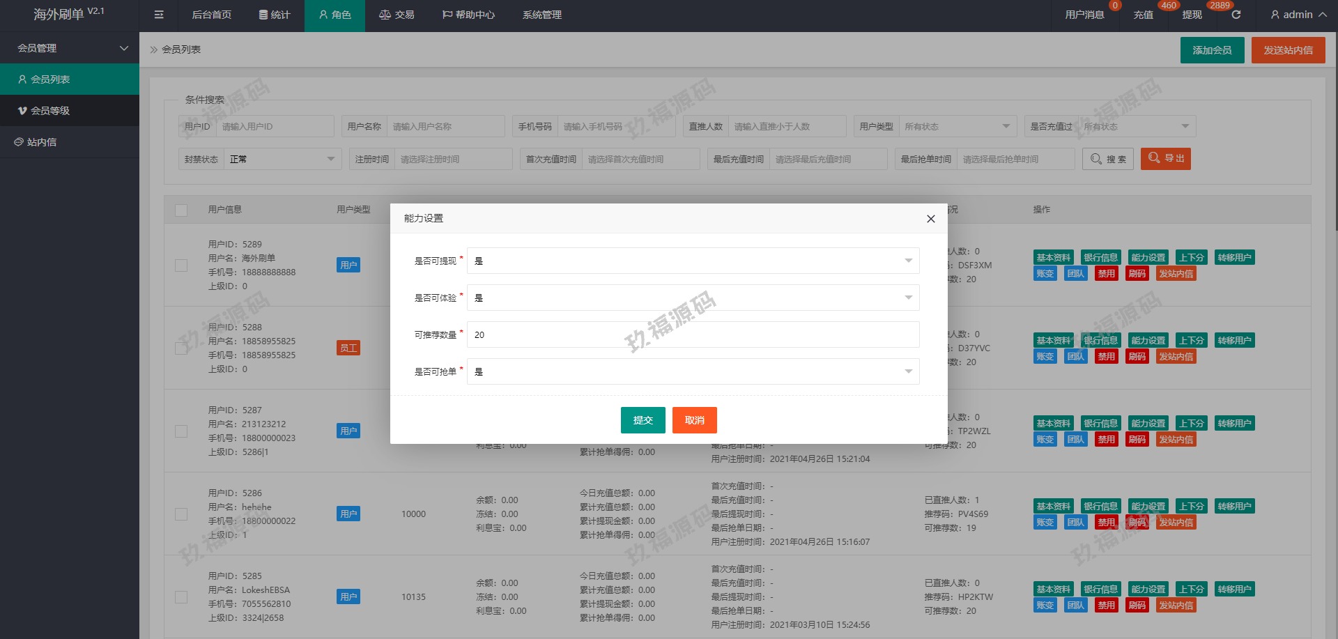 此套系统是专门二开的单纯抢单返佣系统,系统可单独用户设置抢单、体验、提现等功能