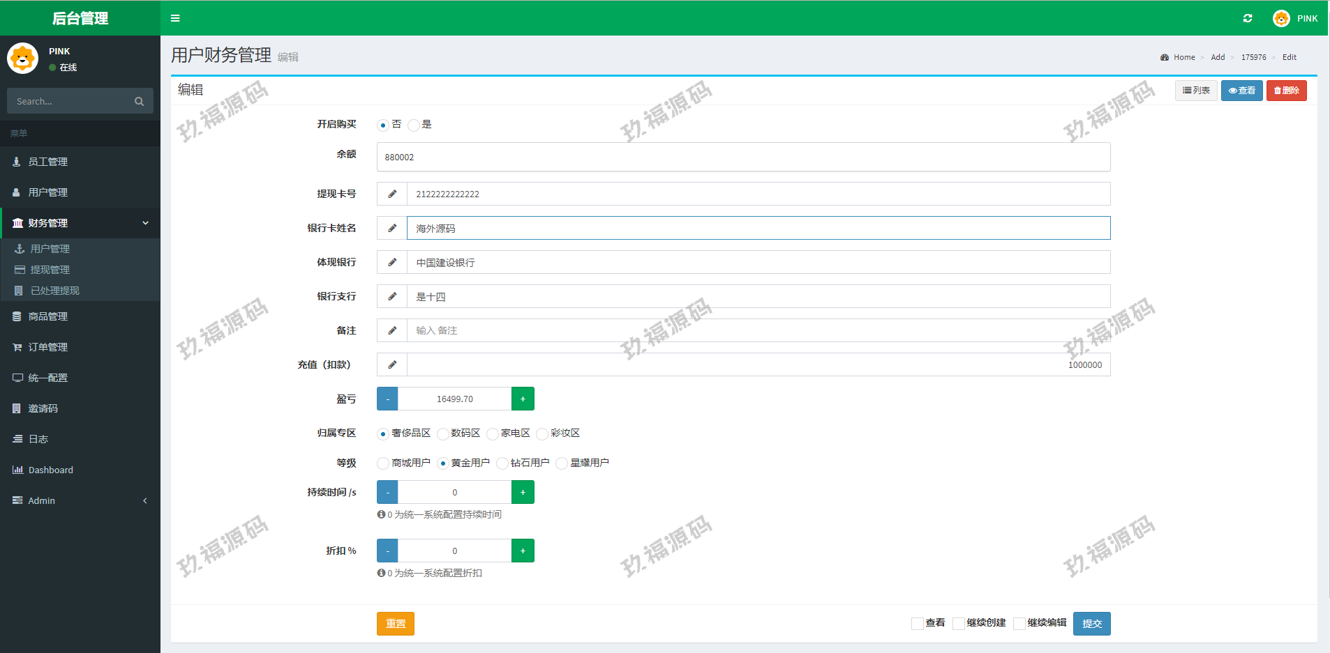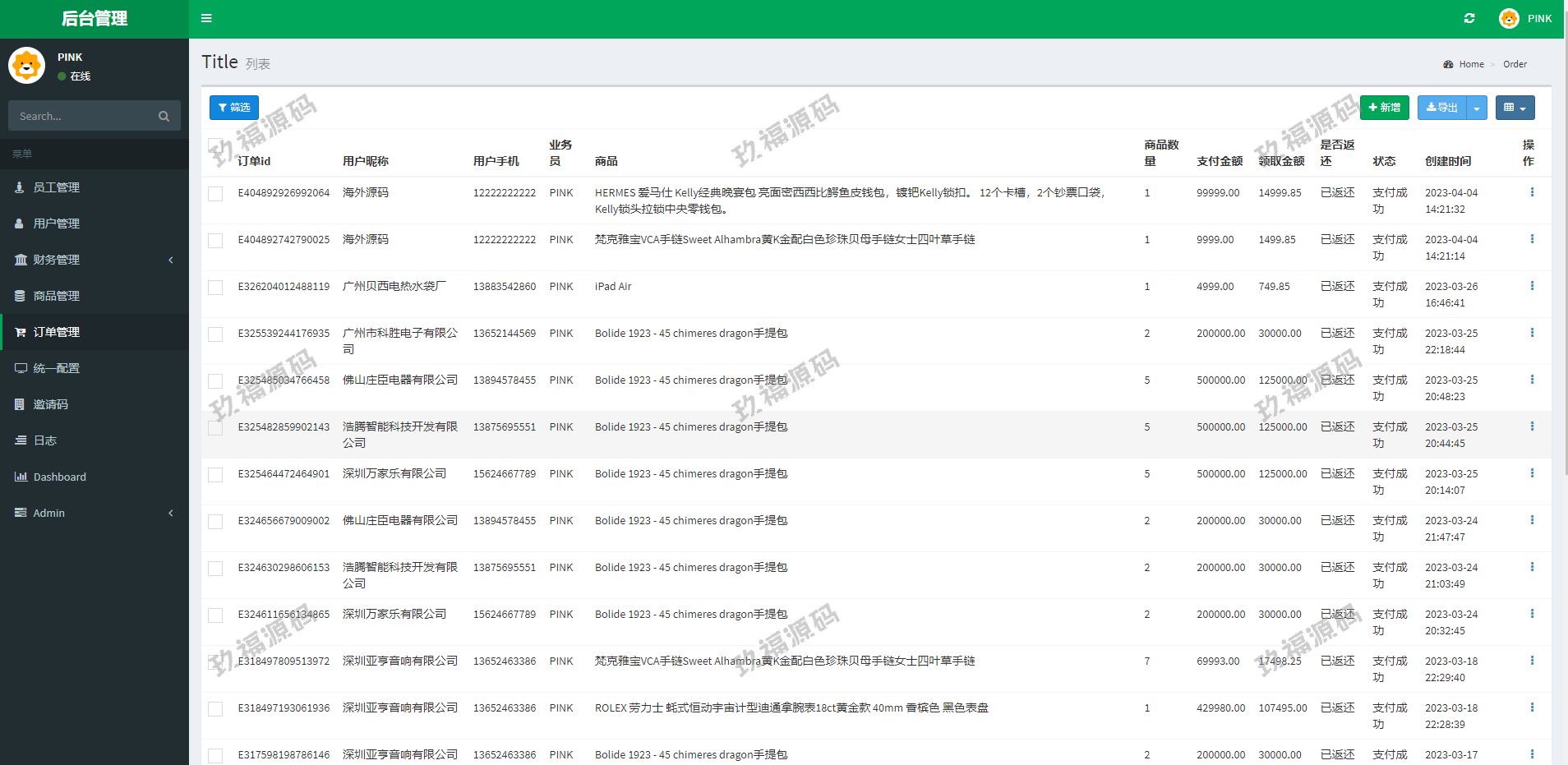 系统带权限代理后台,可单独生成邀请码,后台可设置购买权限、返现时间、持续购买