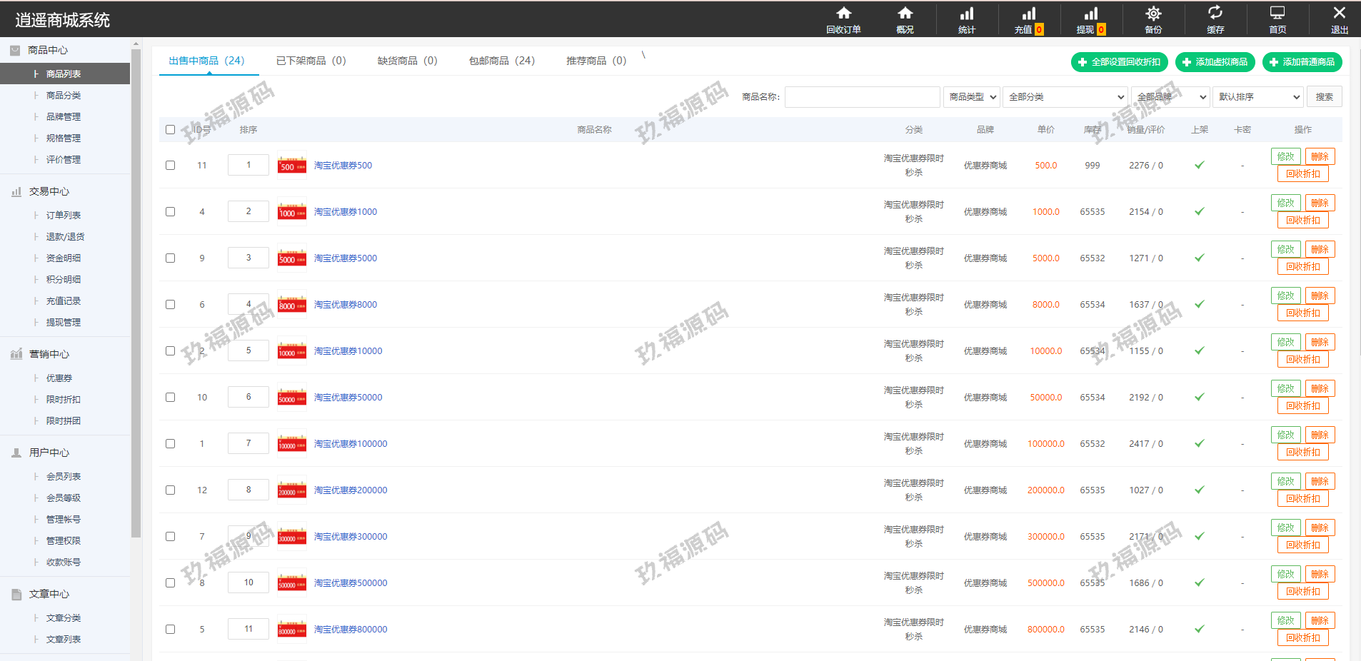系统是逍遥商城二开的优惠卷购物回购系统,产品不局限于淘宝优惠卷可以自行更改产品