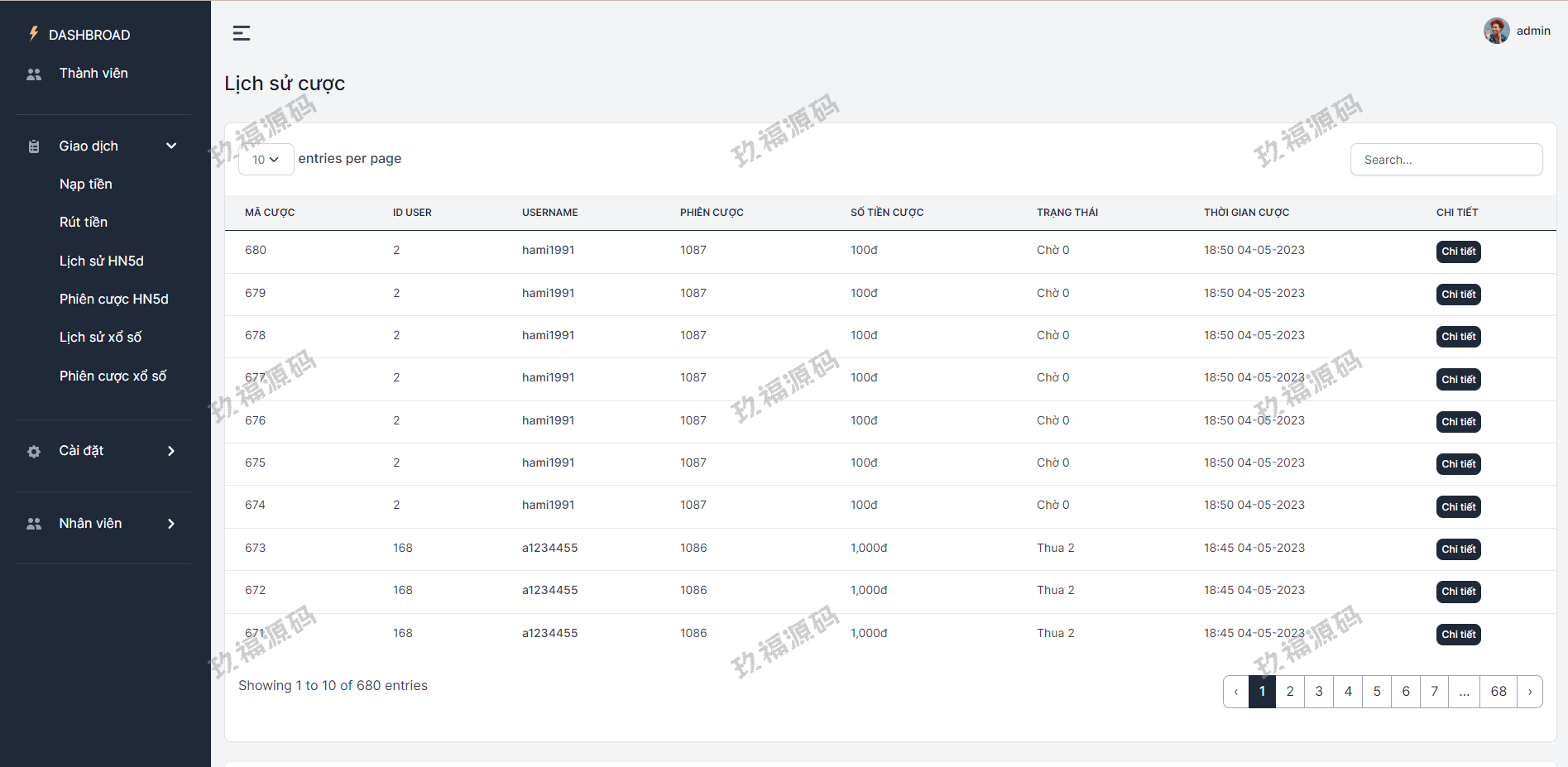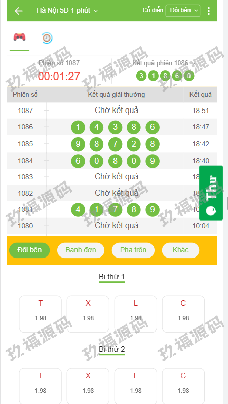 此套是纯越南的彩票cp系统,系统默认只有俩个一分钟彩种,但是前端添加了多个名称游戏