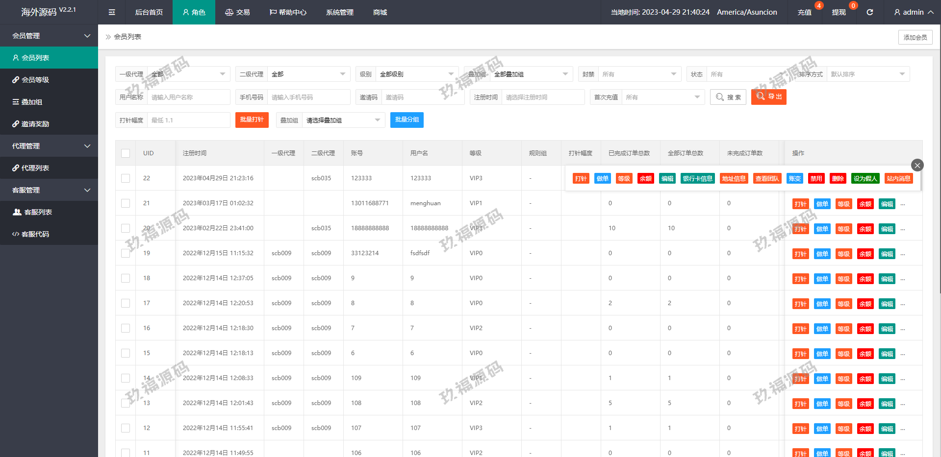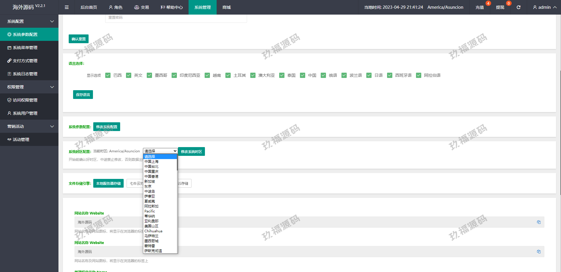 系统支打针、叠加组、余额宝、时区设置等功能