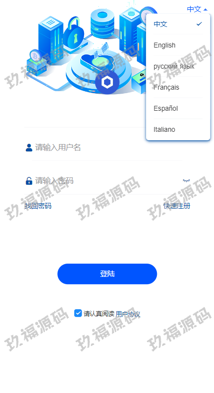 后台有理财挖矿法币等功能选项但是前端是没有的需要自己二开(这些不影响正常使用