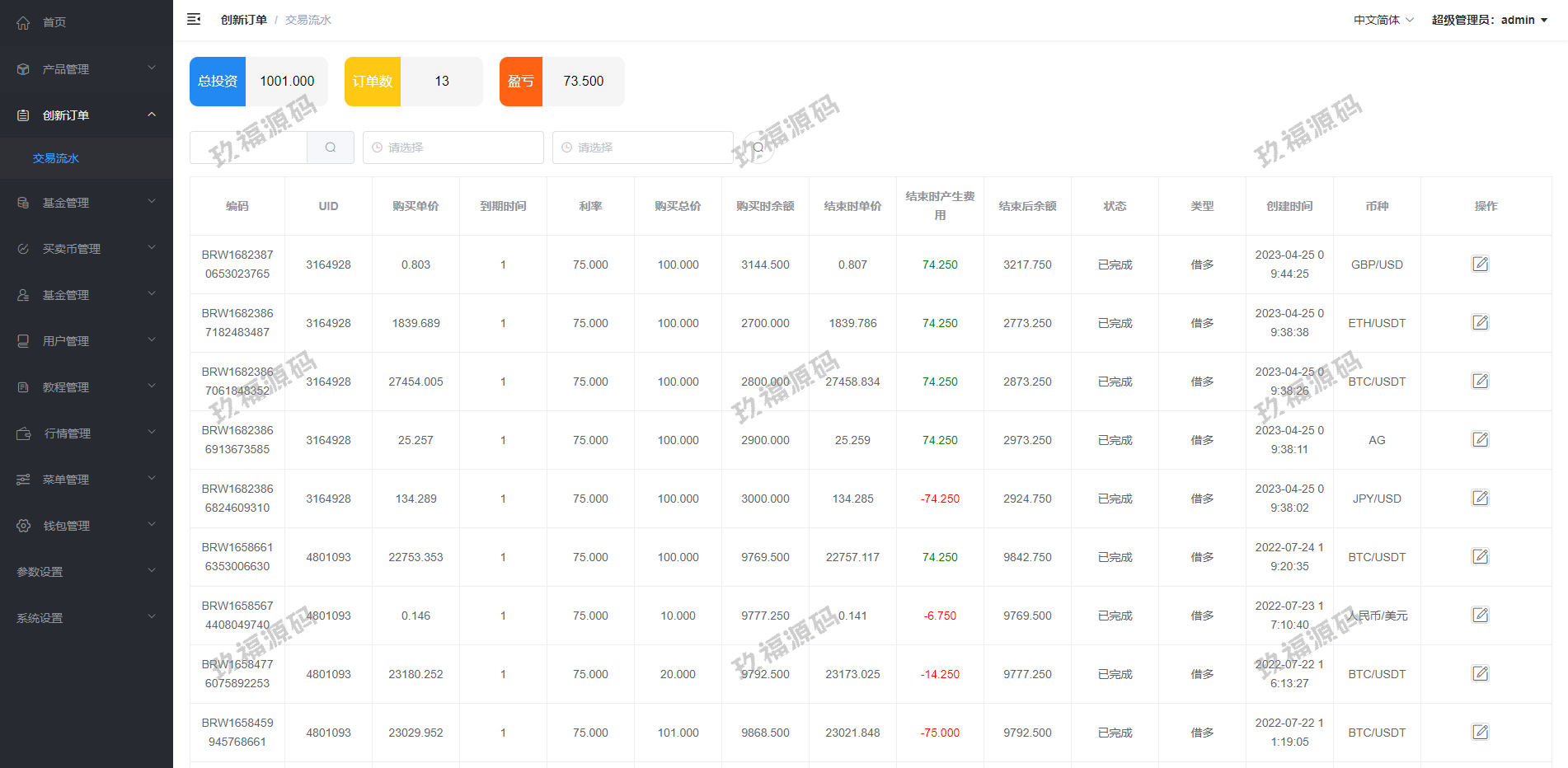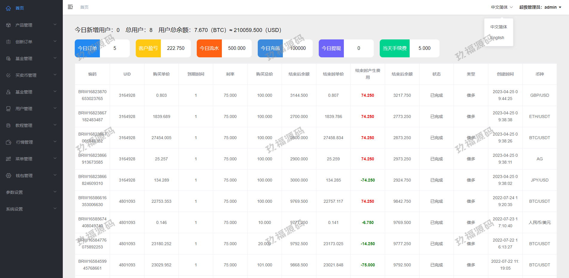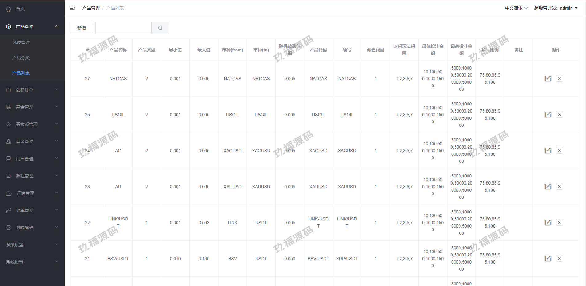 系统产品: 虚拟币 外汇 黄金 白银 原油 天然气 (可以自行添加)