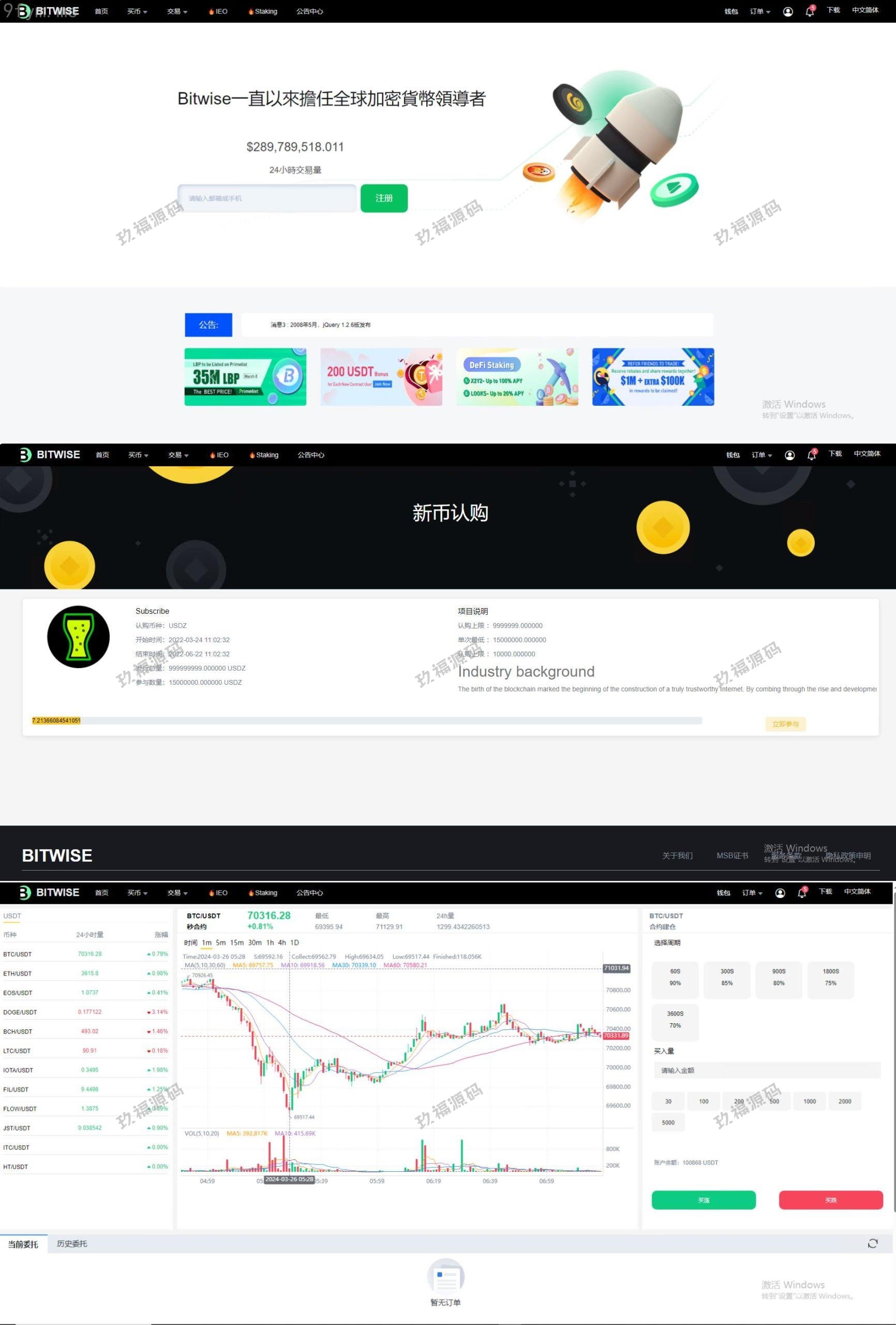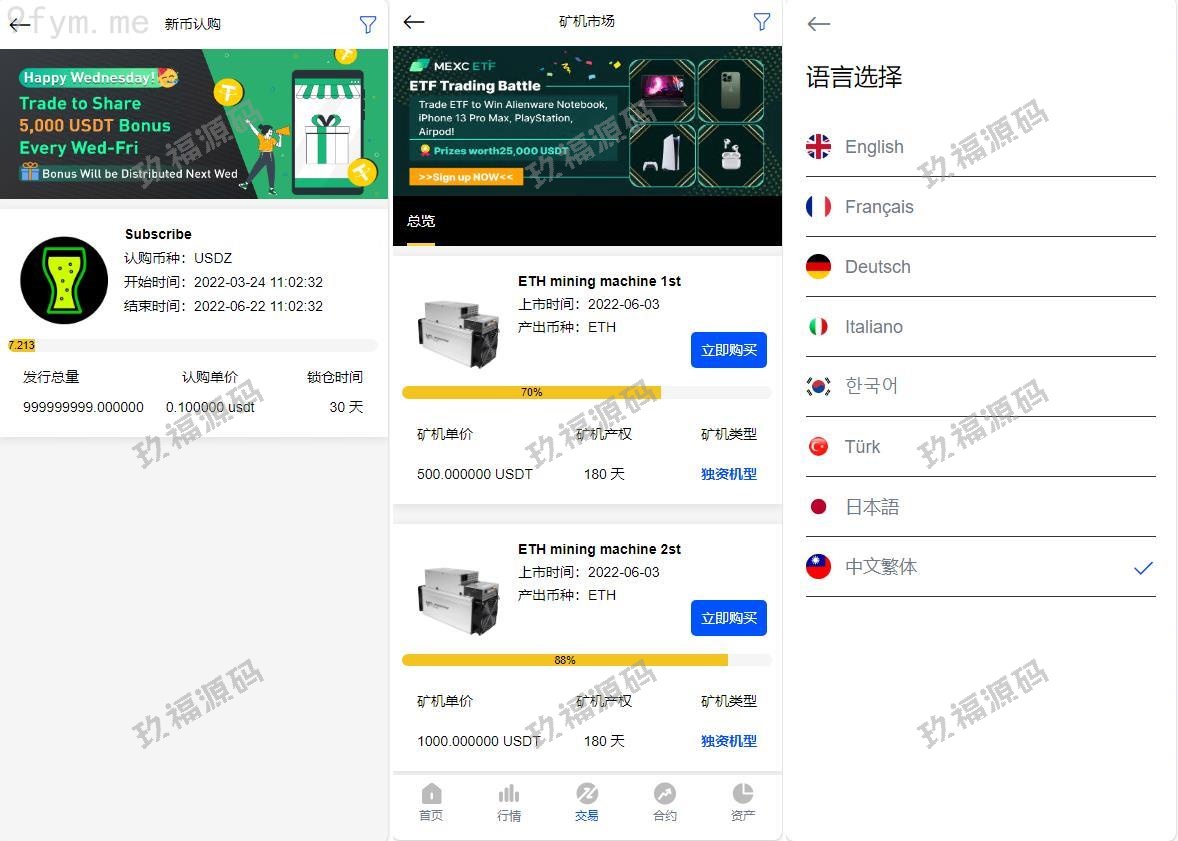 系统8国语言 支持币币交易合约交易 挖矿 新币认购 带有PC端