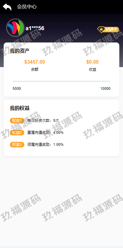 VIP等级划分,可根据不同等级,设置不同的百分比奖励