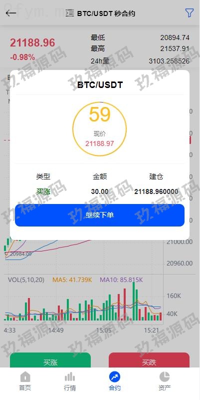 源码基本符合了只要秒合约的需求,另有原版附带PC币币交易、矿机投资等功能
