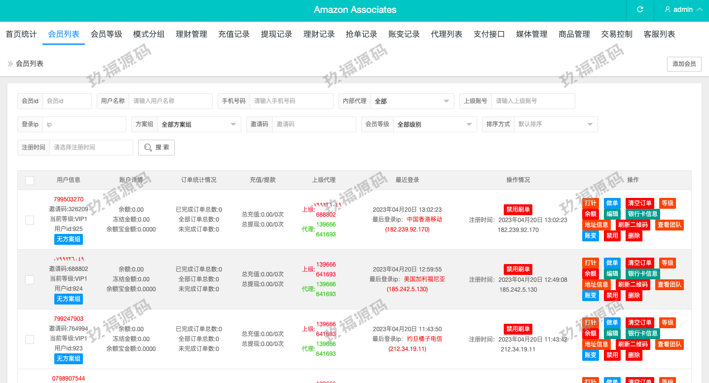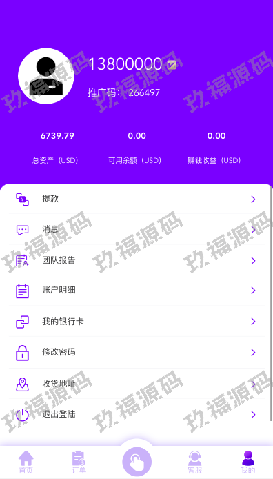 后端thinkphp框架,系统支持叠加组,打针,余额宝等功能。usdt充值,权限代理后台