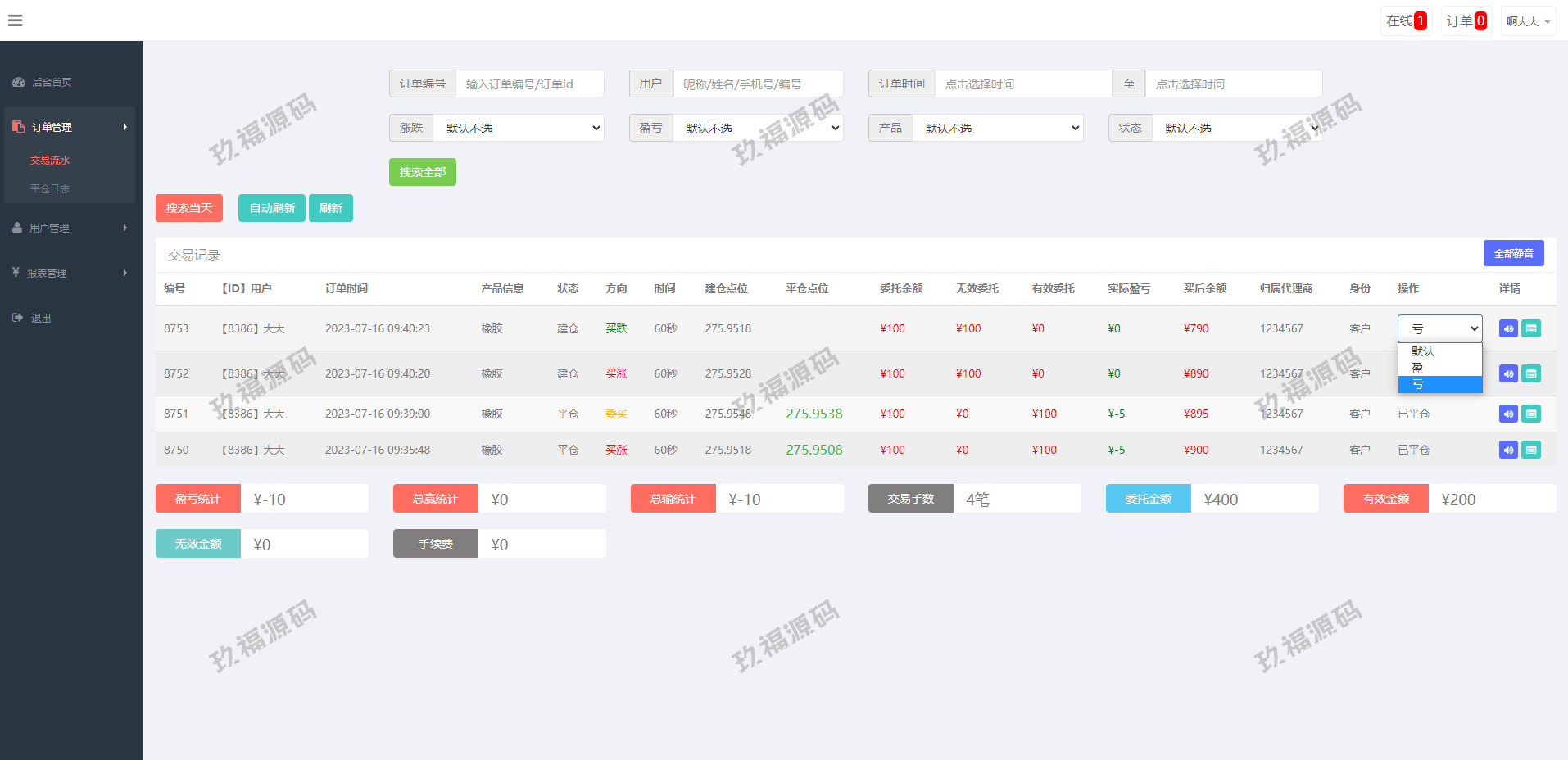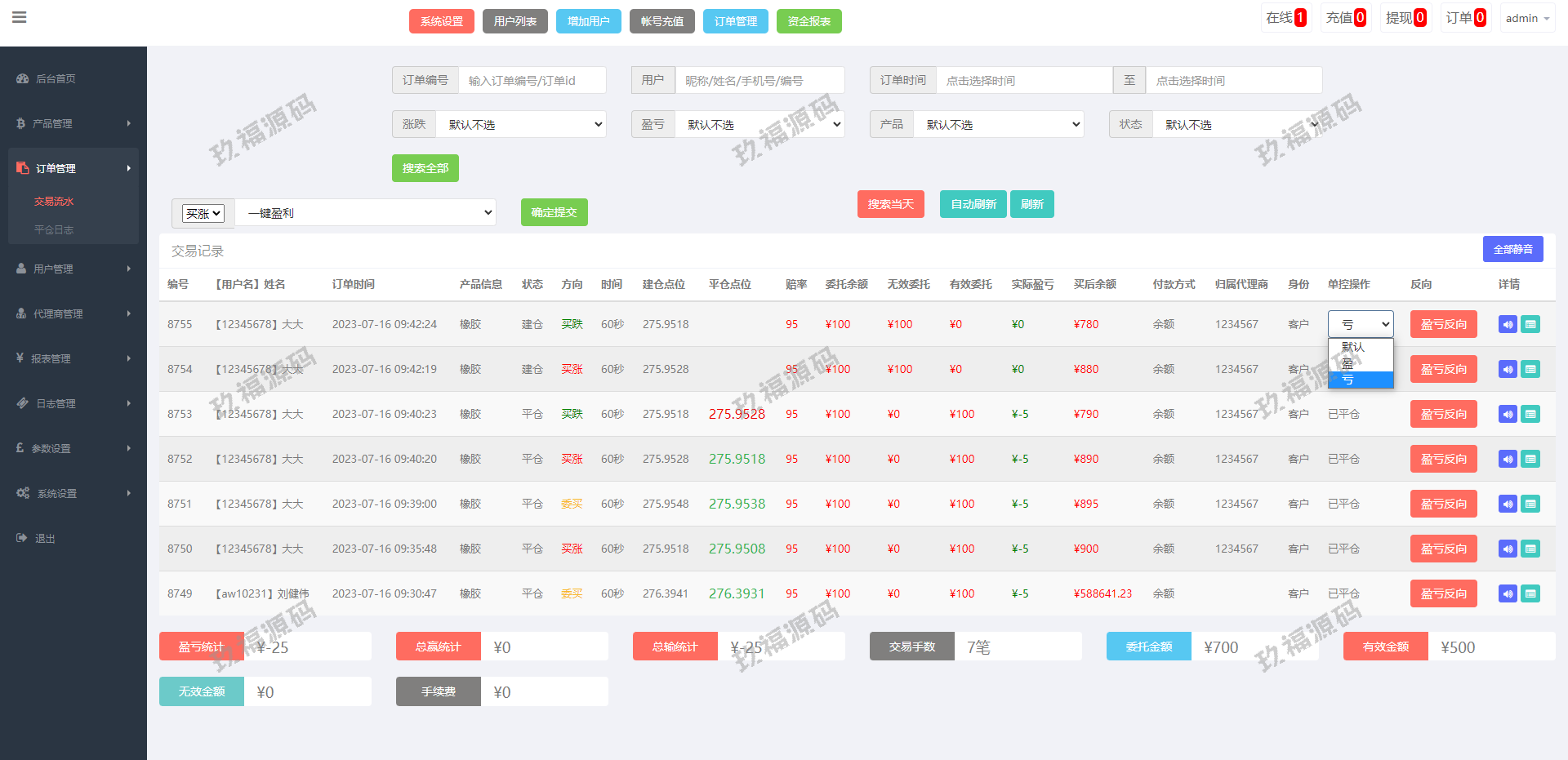 前端期货产品K线正常,新增一键买入、单用户风控等功能
