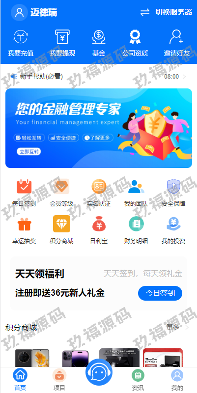系统功能支持:签到、抽奖、积分商城、余额宝、余额互转等功能