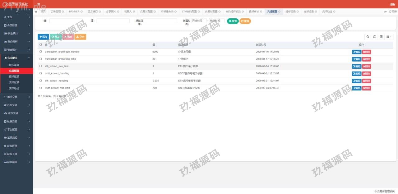3币种管理(币种的添加设置、提币账户管理、是否、是否显示、交易对管理);