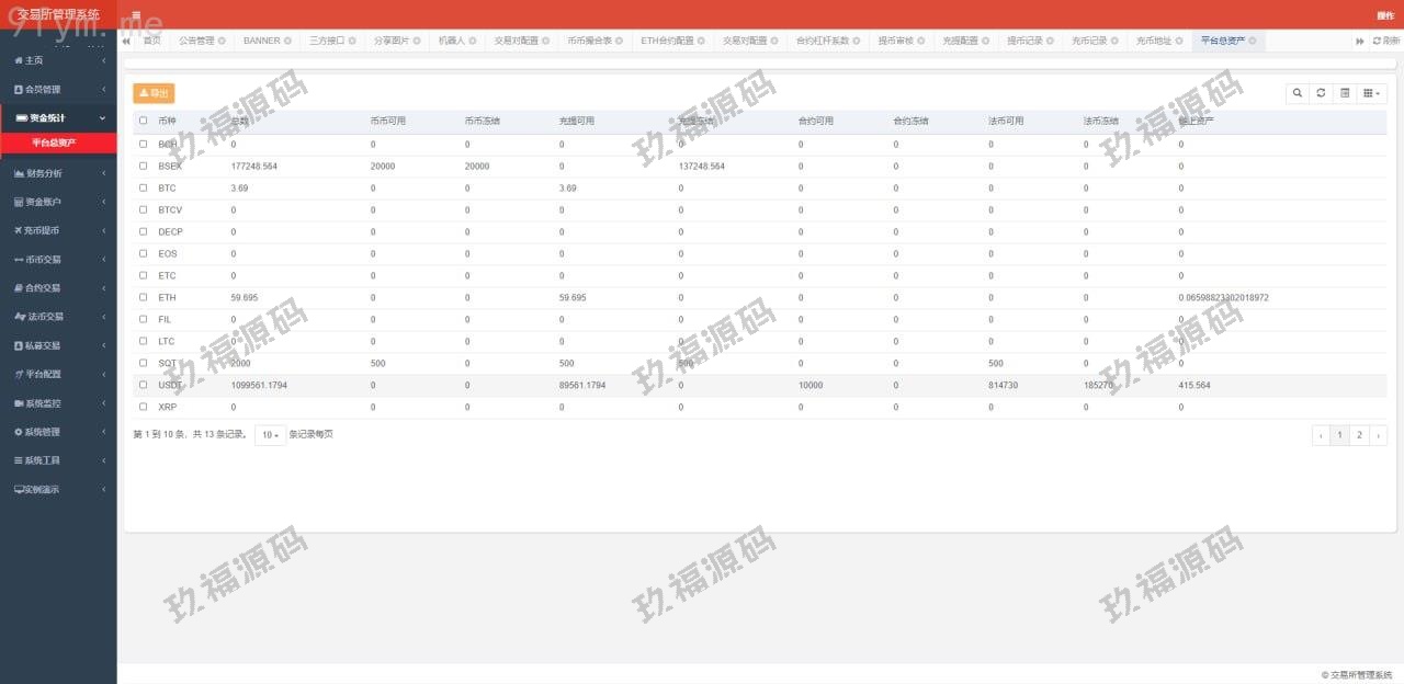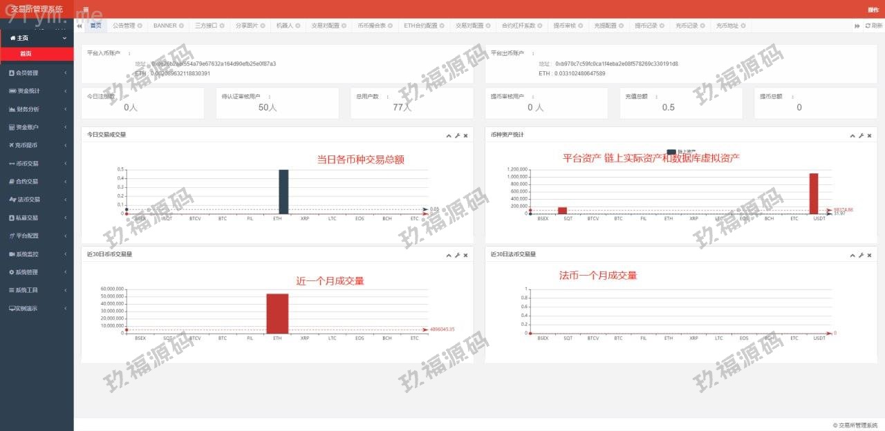 1.系统概况(币种统计、用户统计、交易统计、异常用户);
