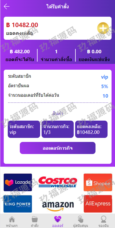 前端紫色泰语版抢单刷单系统,前端单泰语,支持二开其他语言