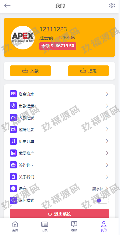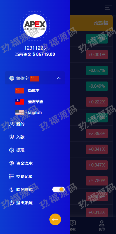 系统交易产品以外汇为主K线正常、提现限制、金额一键冻结等功能