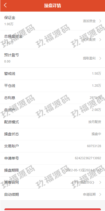 系统设有预警线自动平仓线,可按天配资,按周配资,按月配资,到期之后自动延期扣除手续费即可