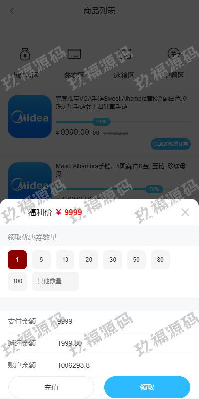 增加不同分类返利比例不同,增加领取记录,系统完美运行