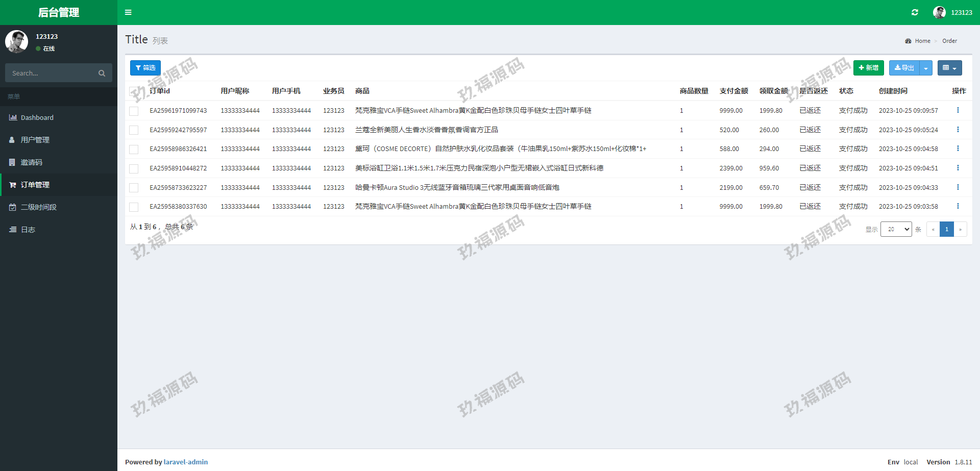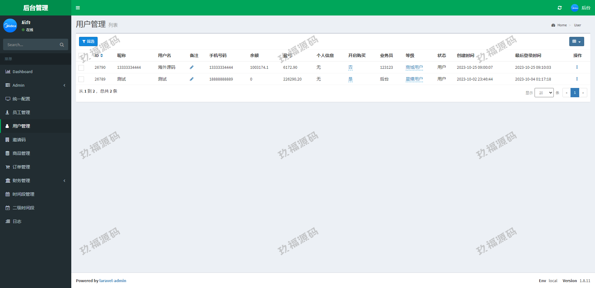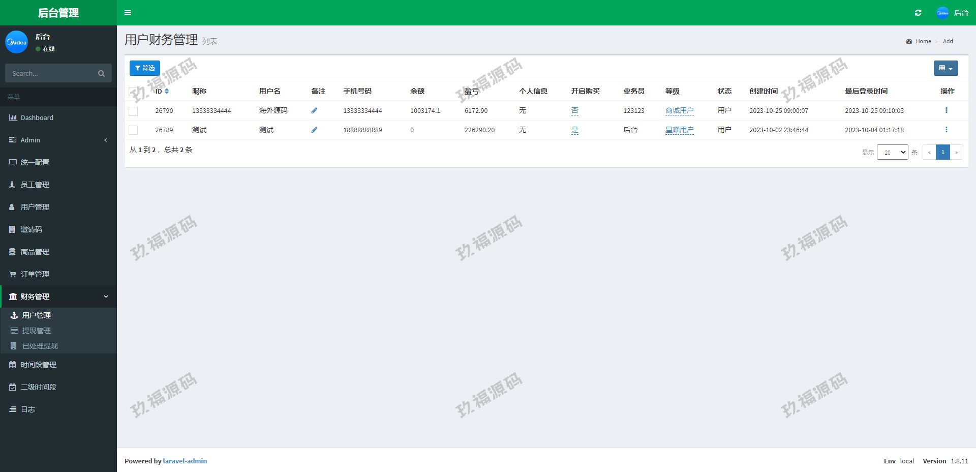 系统采用Larave框架,系统带权限代理后台