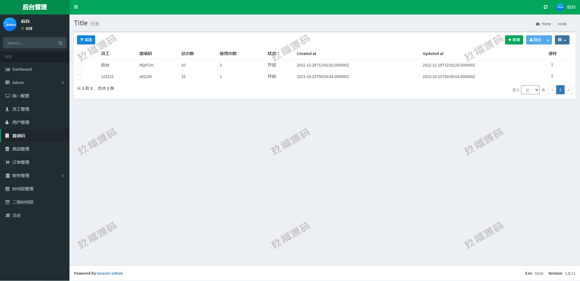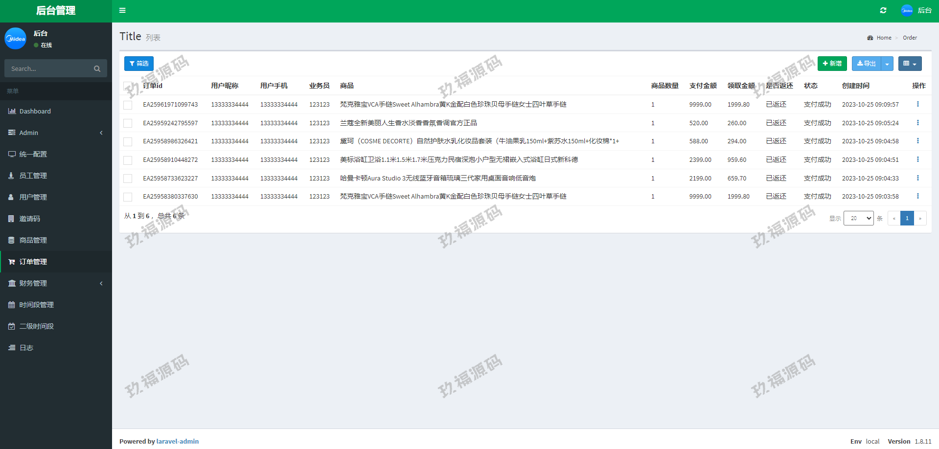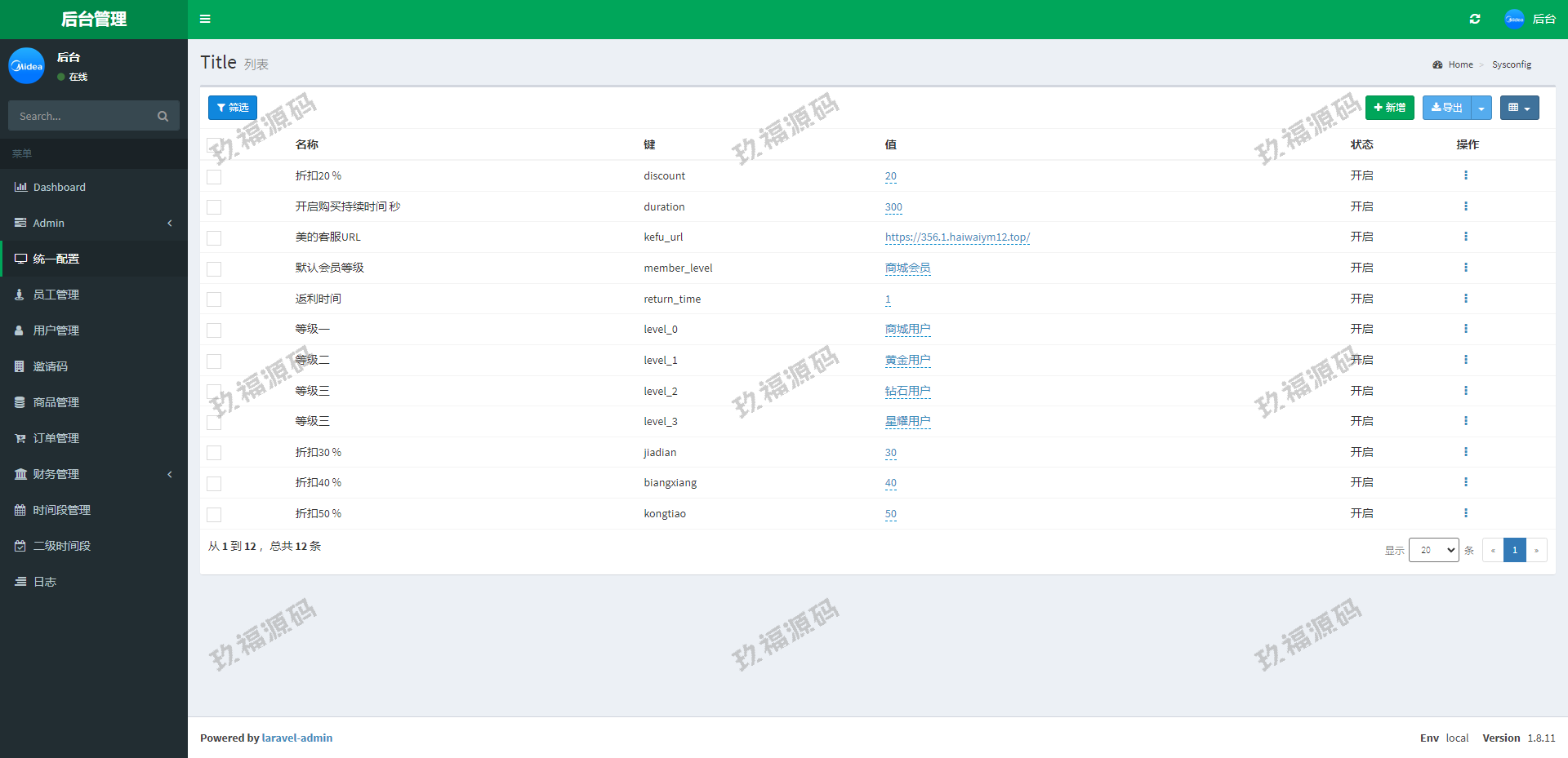系统采用Larave框架,系统带权限代理后台