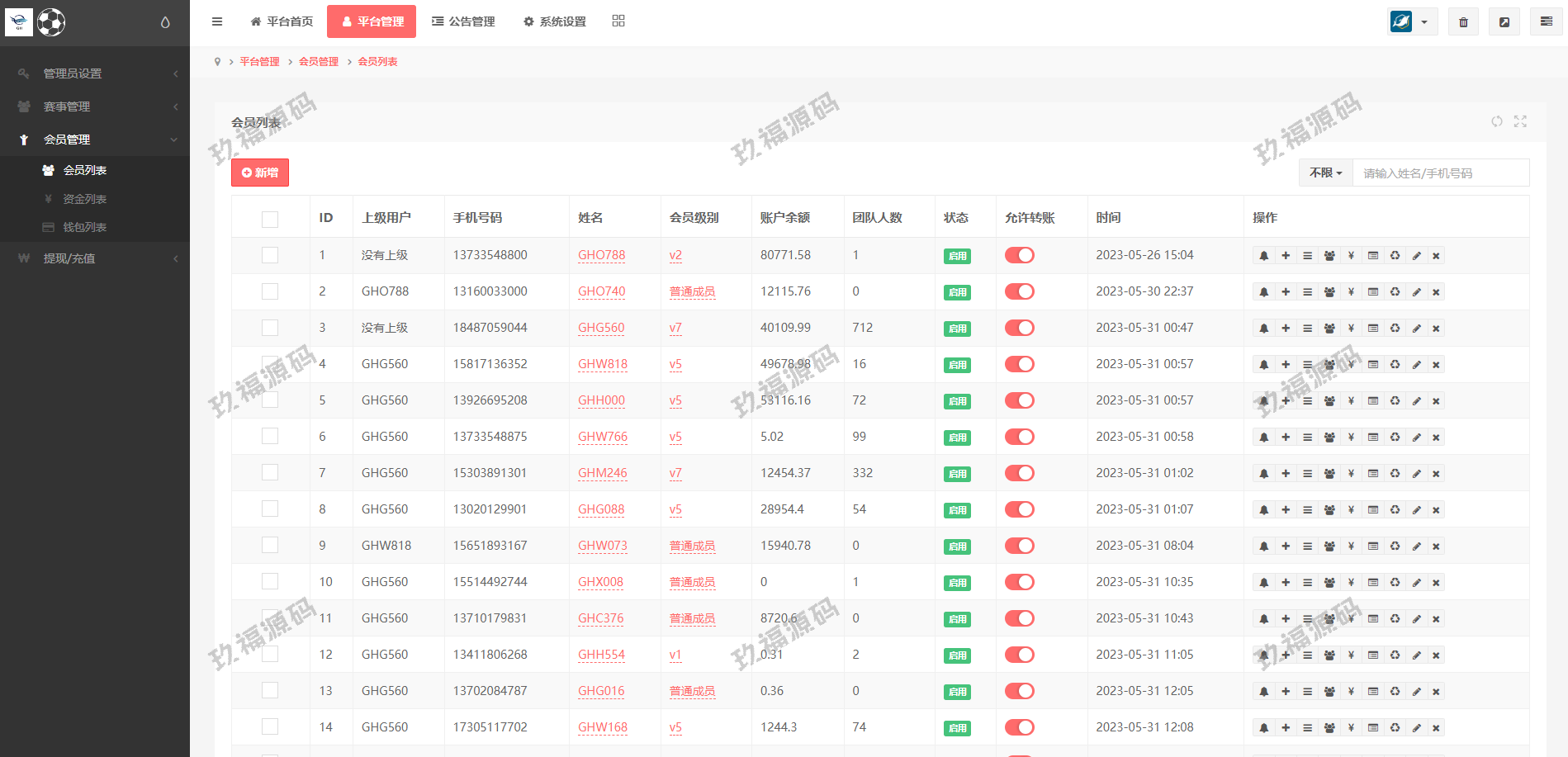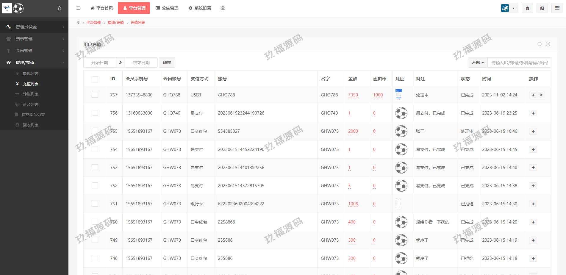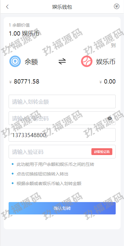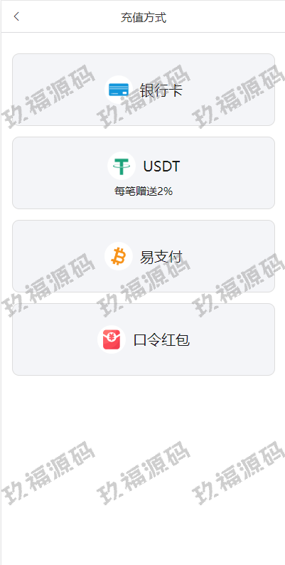 支持用户余额互转,充值方式有银行卡、usdt、口令红包、易支付,ng钱包互转余额,后台带回收功能