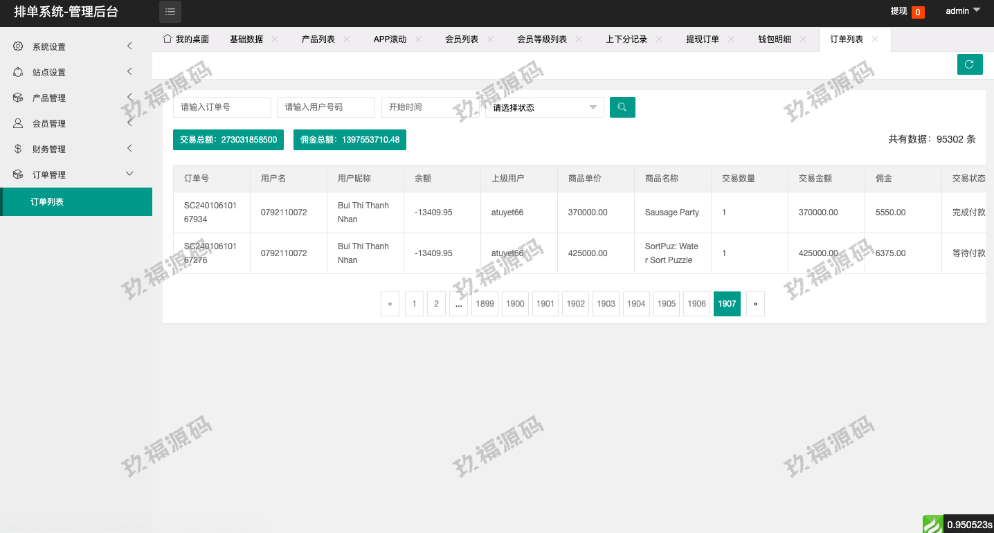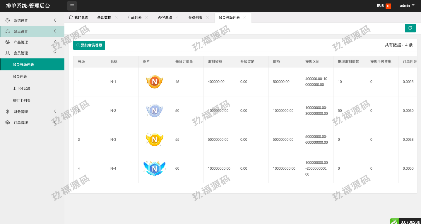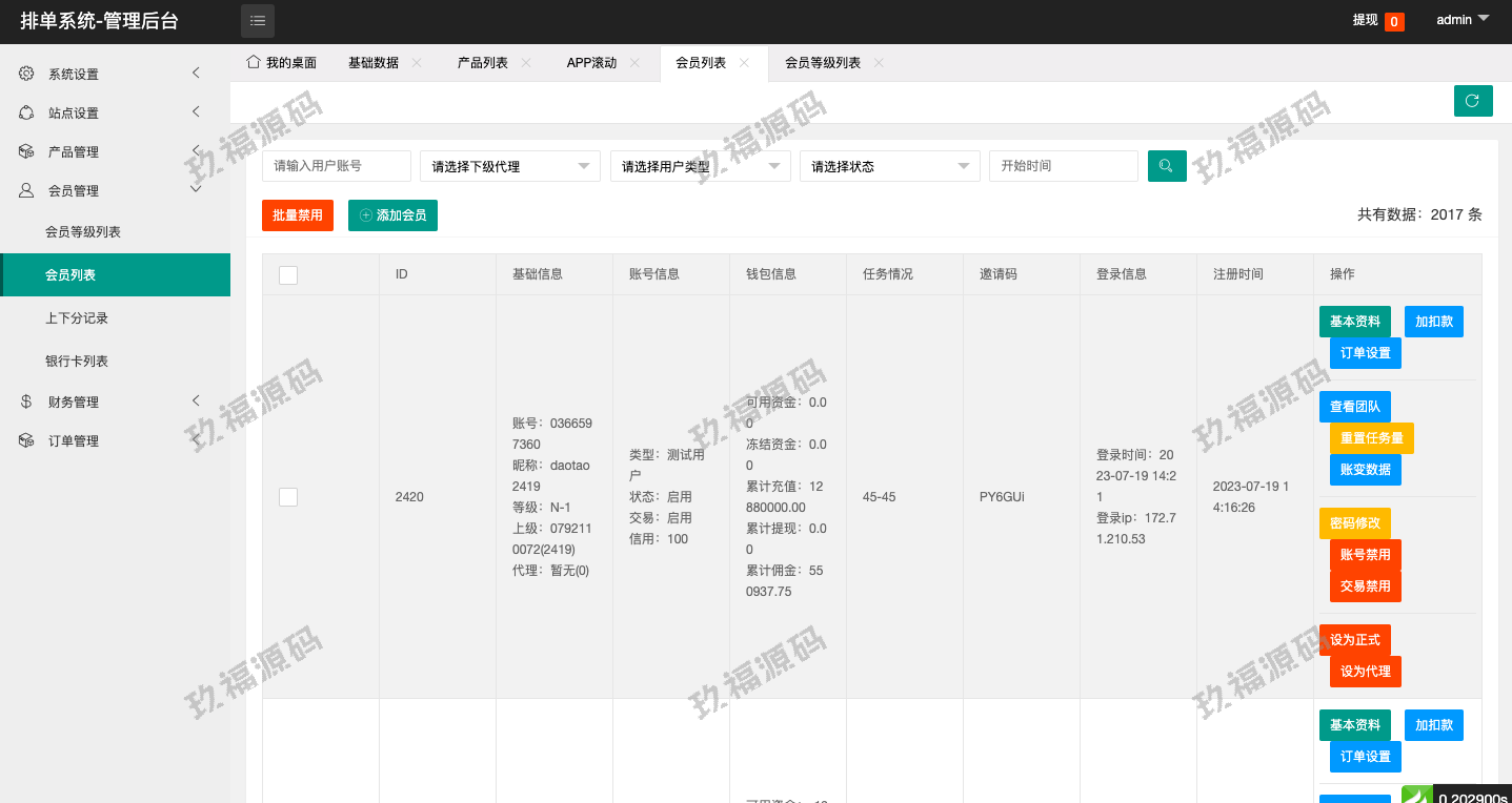 5级返佣功能,后端卡单连单功能完美使用,代理是权限代理