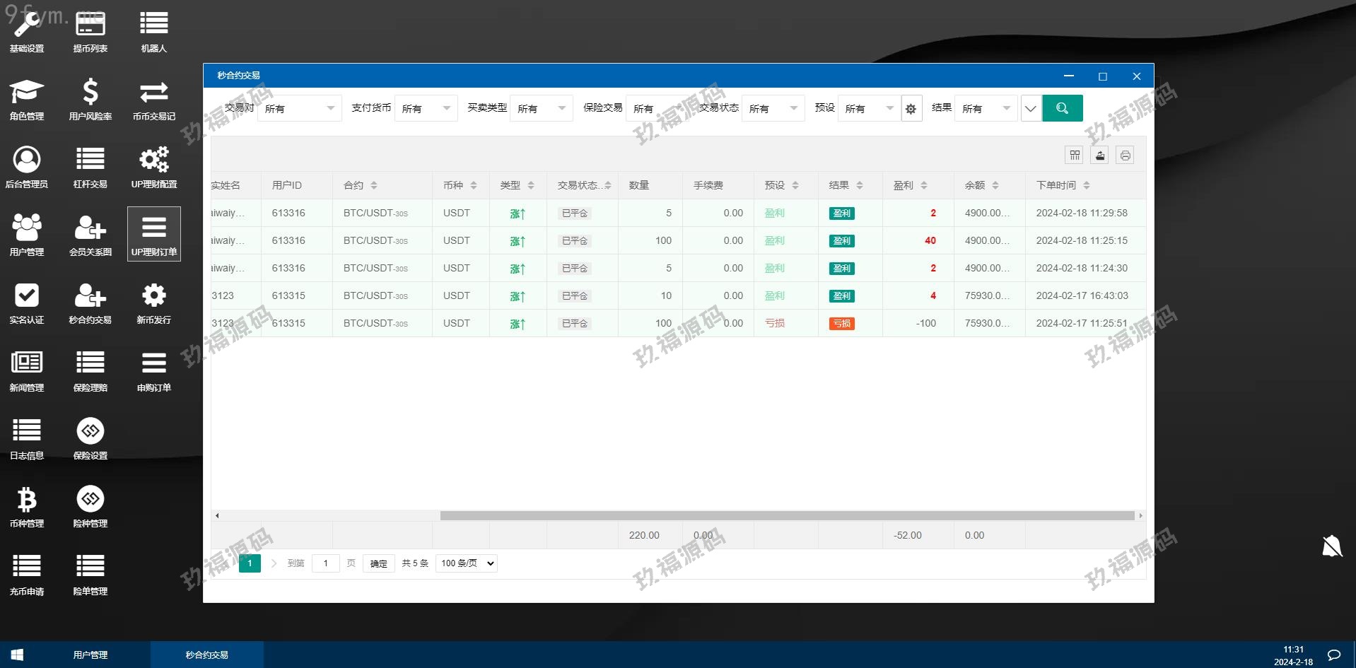 系统功能支持:秒合约、合约、锁仓挖矿、新币认购功能,无平台币