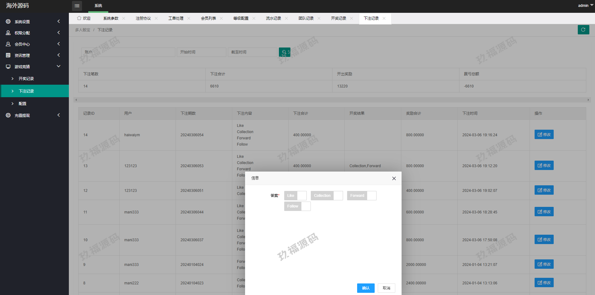 系统全新开发玖福Tiktok点赞下注系统,前端带多国语言