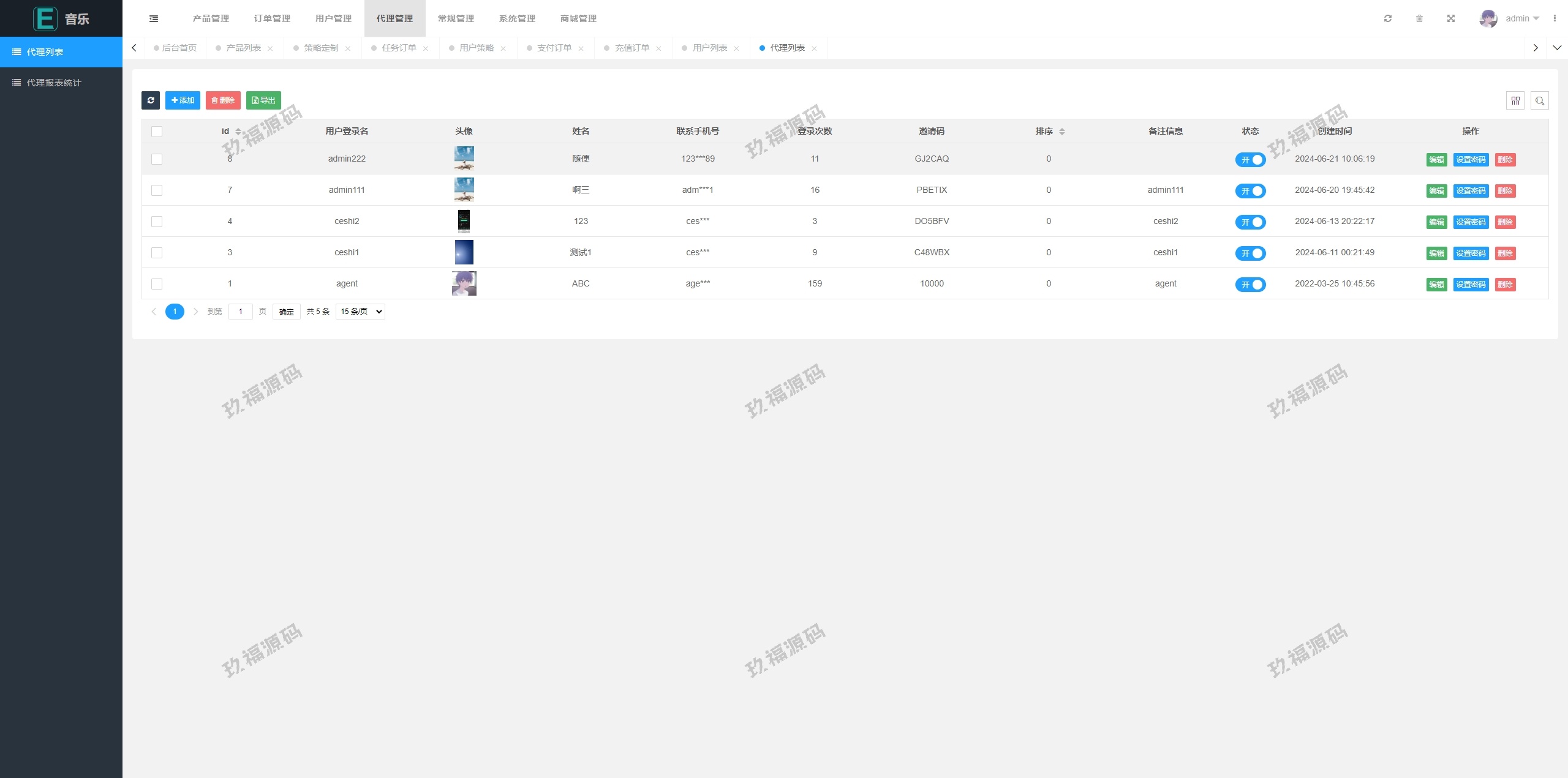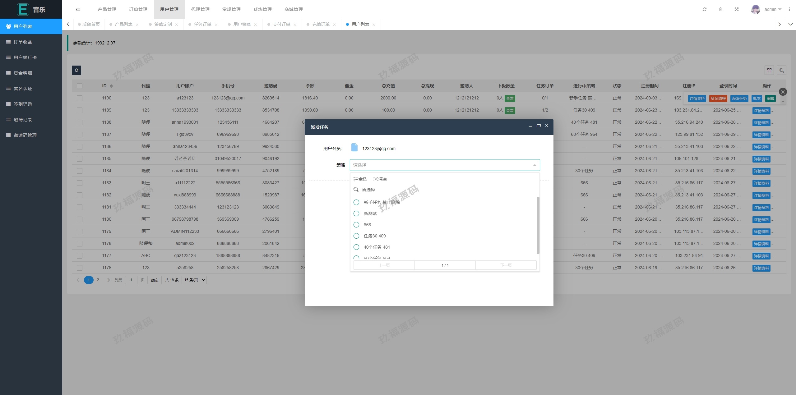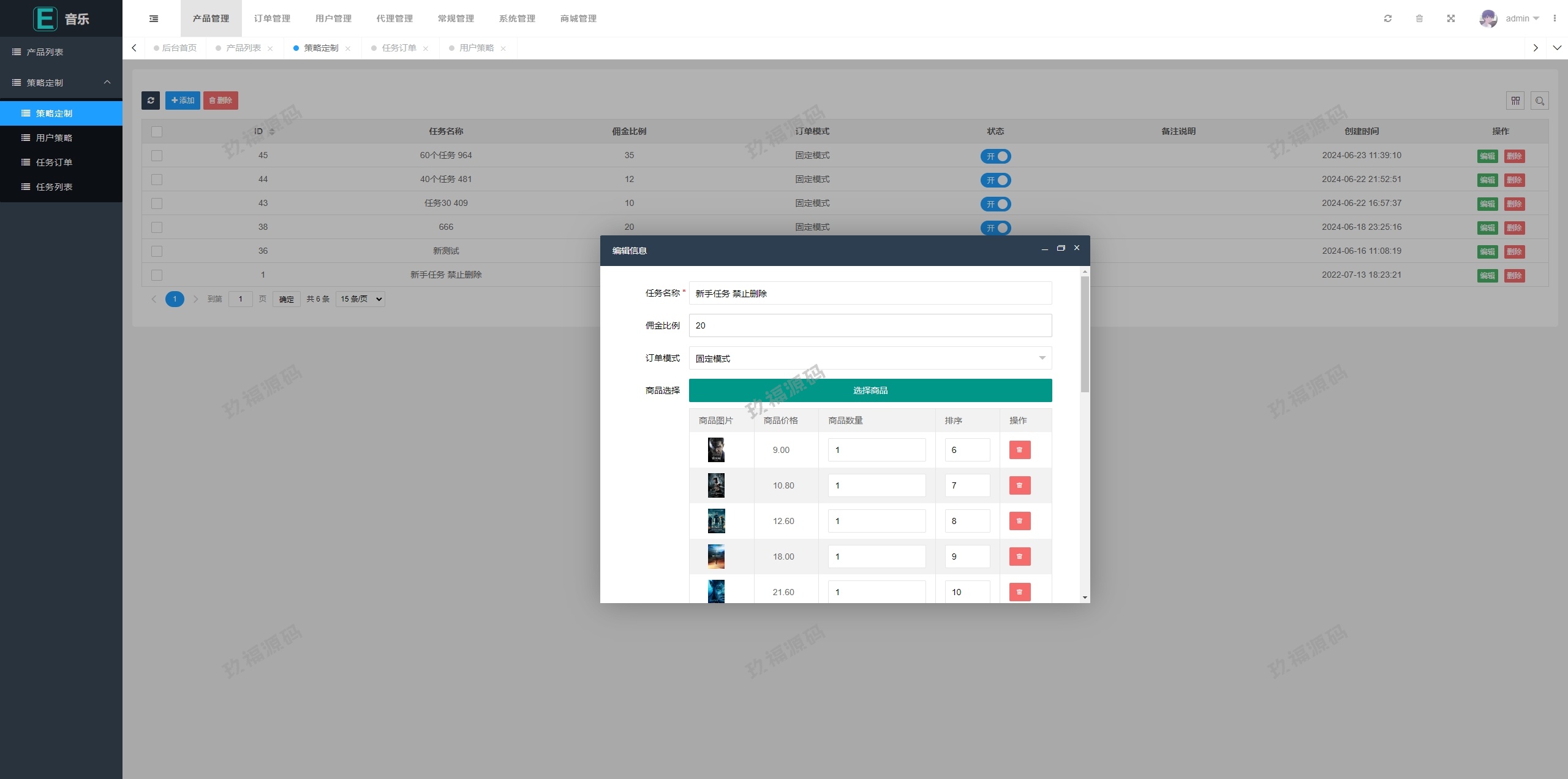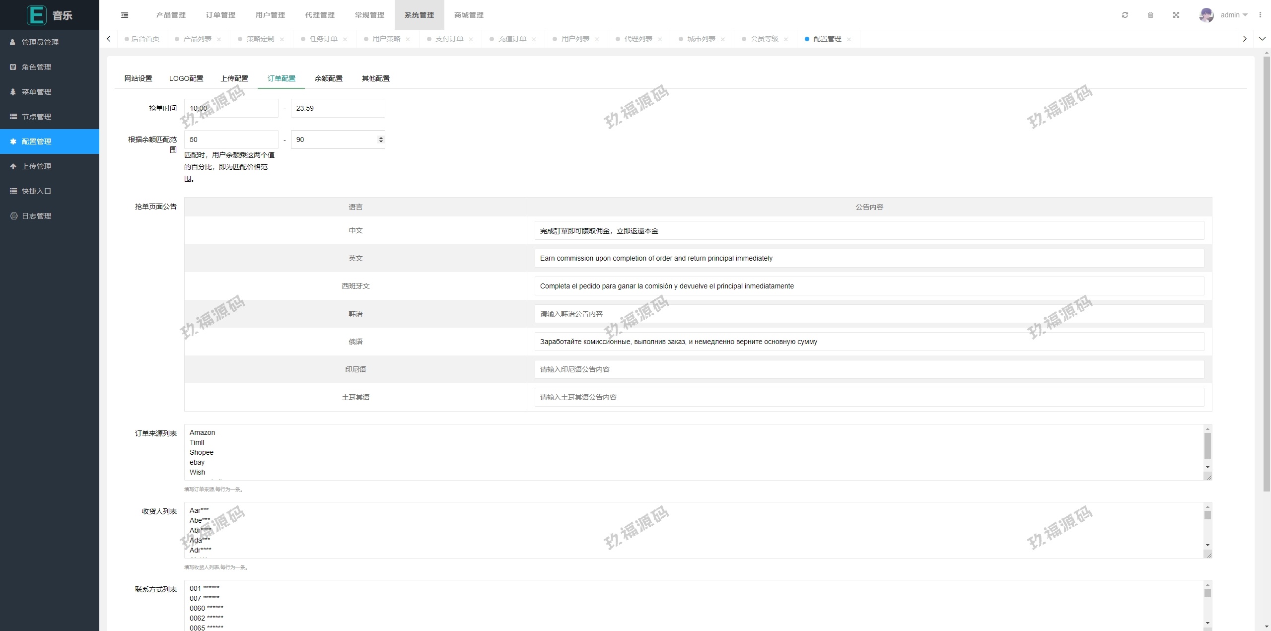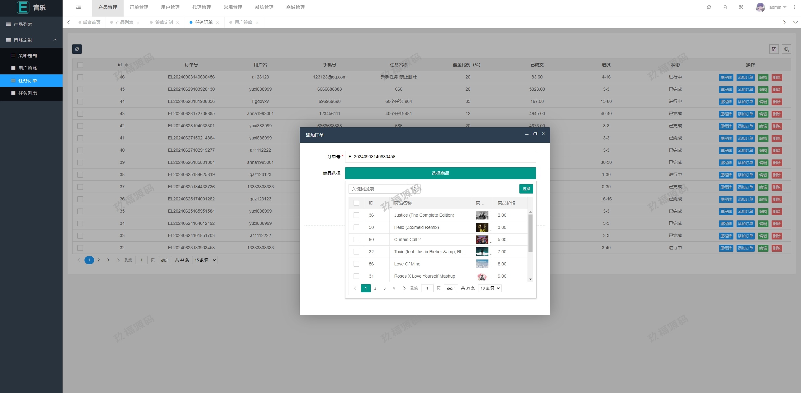 前端音乐定制UI,前端使用uinapp开发后端tp框架带源码 系统支持用户策略定制派单,支持代理后台