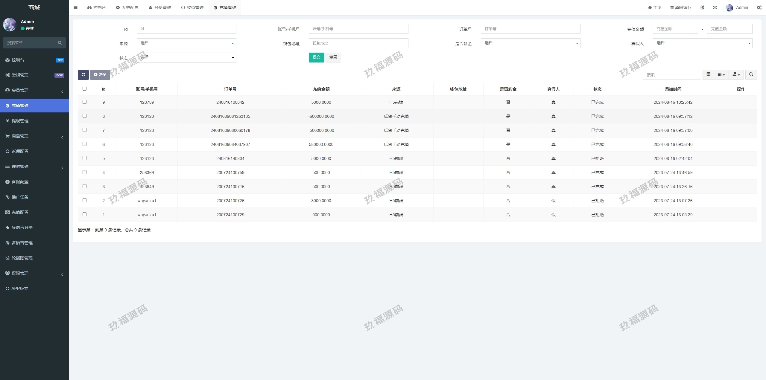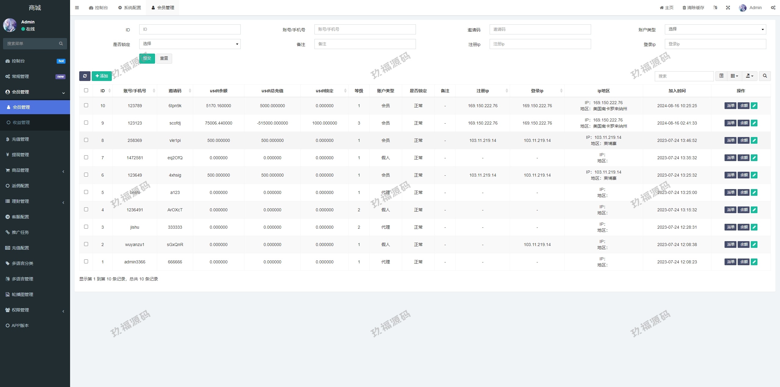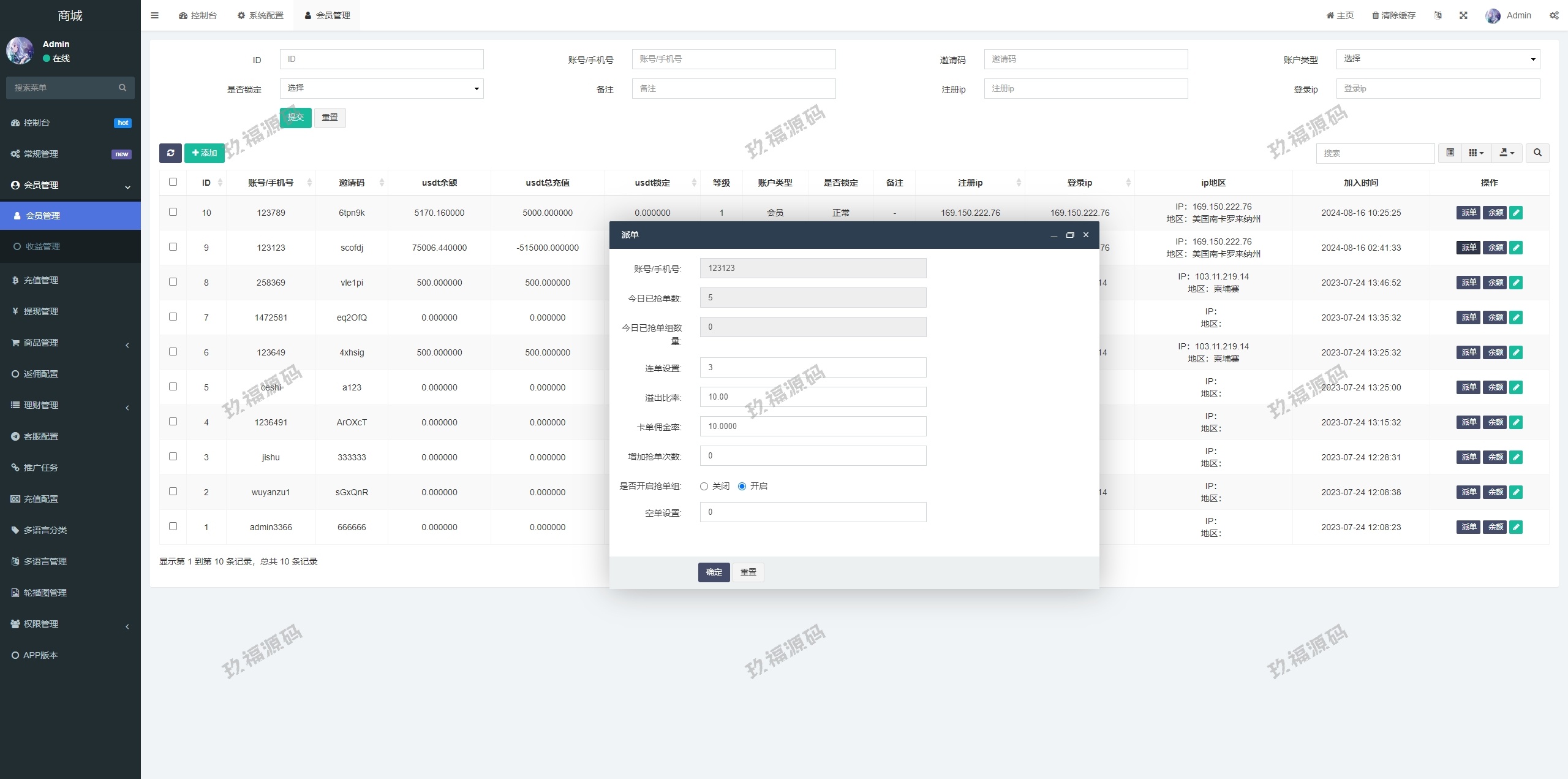 前端带多语言,余额宝,推广任务,派单卡单等功能
