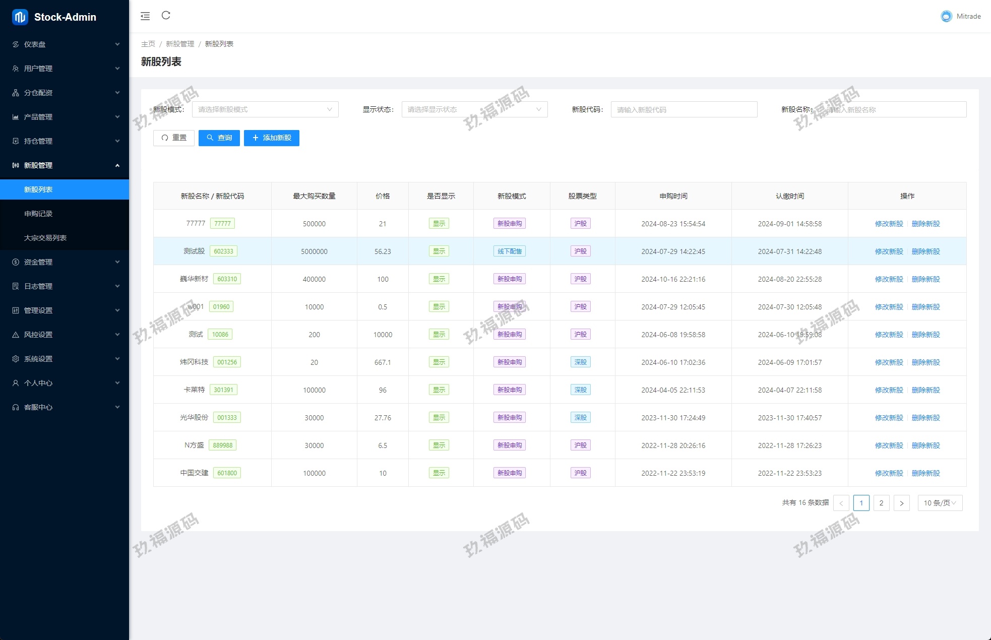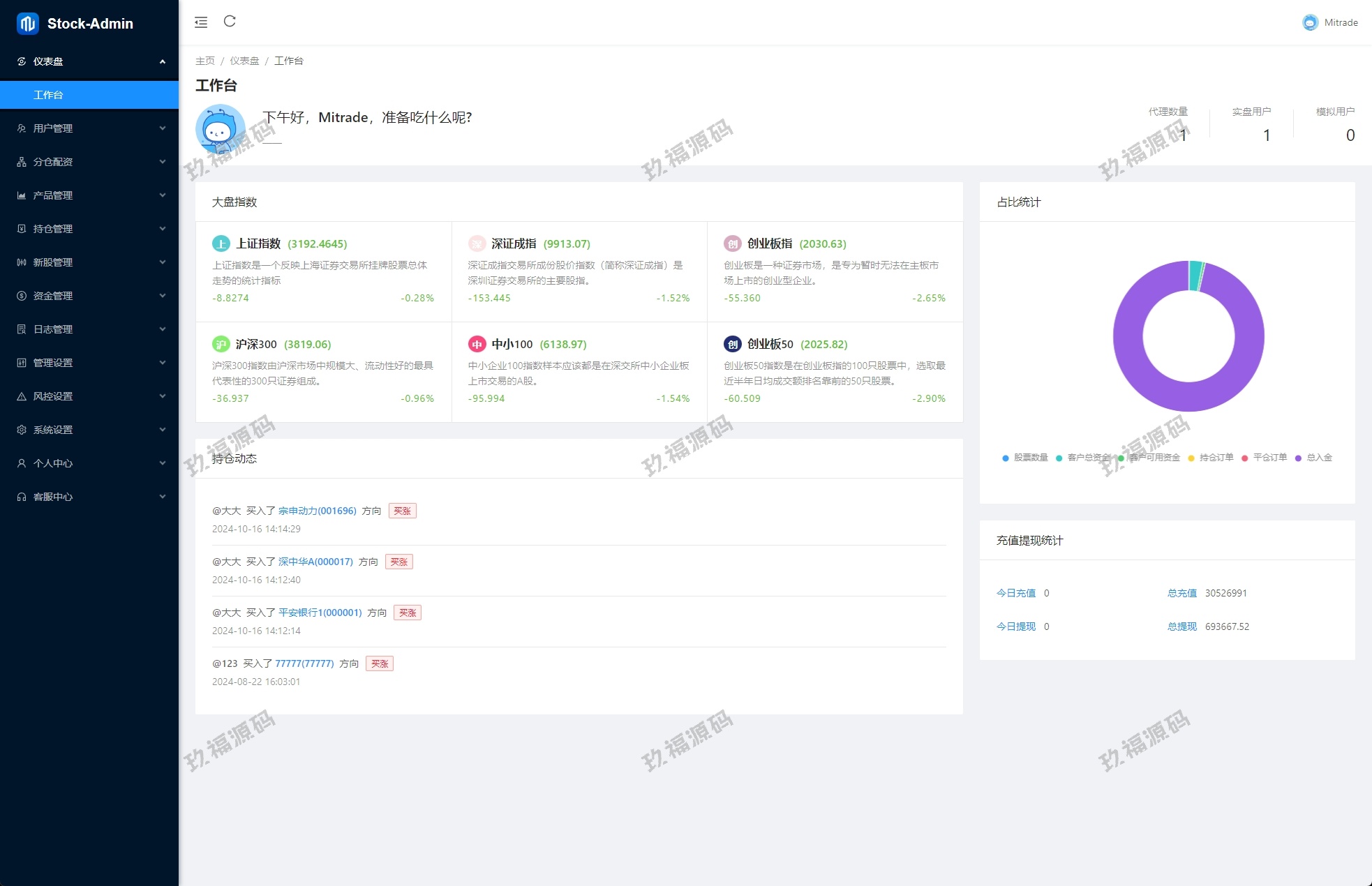 系统前端单a股交易、新股申购、大宗交易等功能 前端、代理后台、总后台VUE开发,服务端java开发带纯源码跟教程