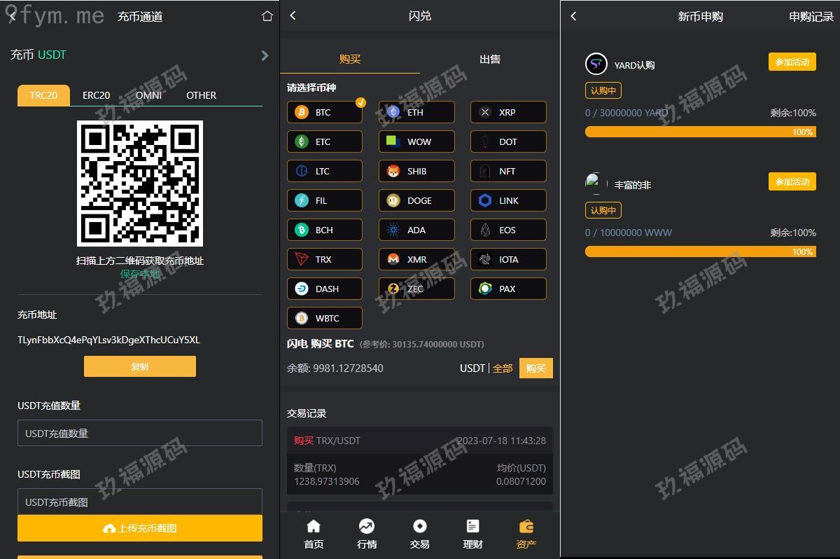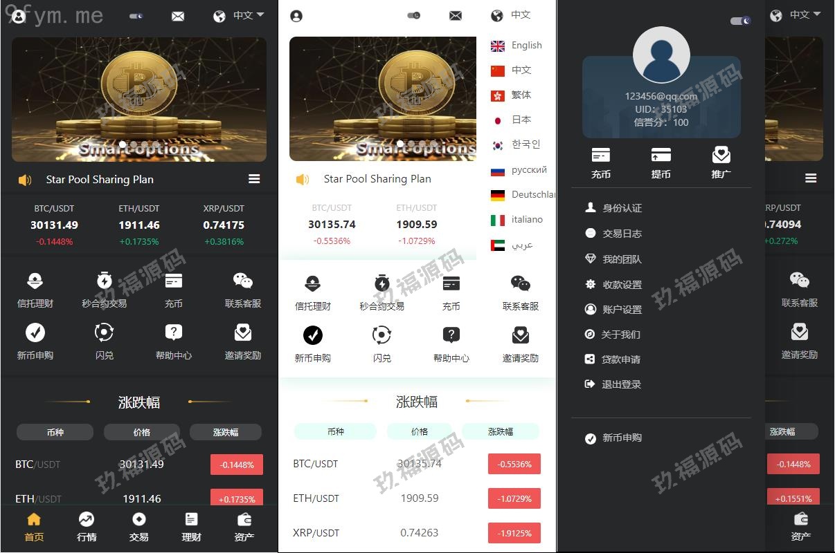 功能支持:币币交易、合约交易、秒合约交易、闪兑、借贷、理财、认购等
