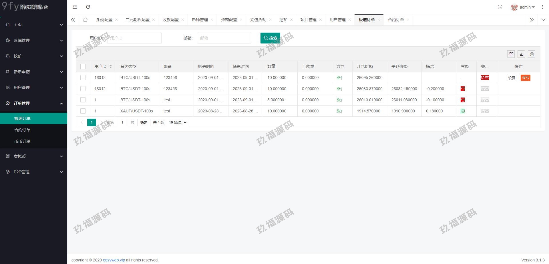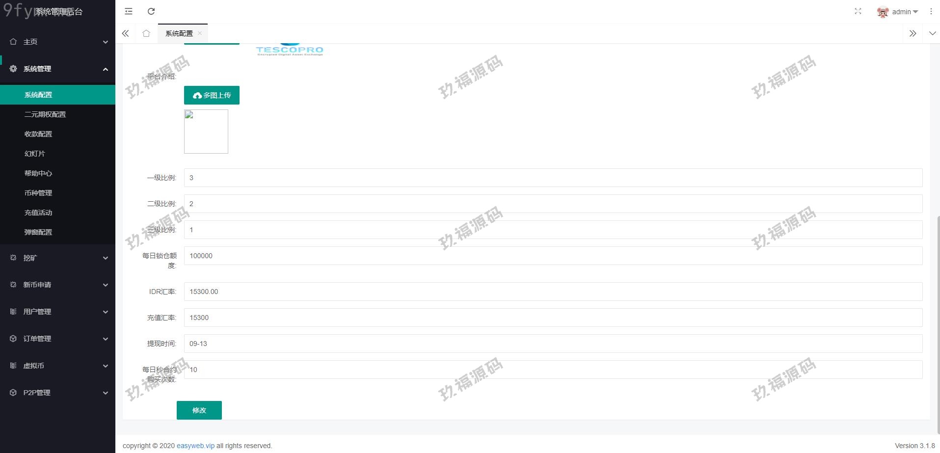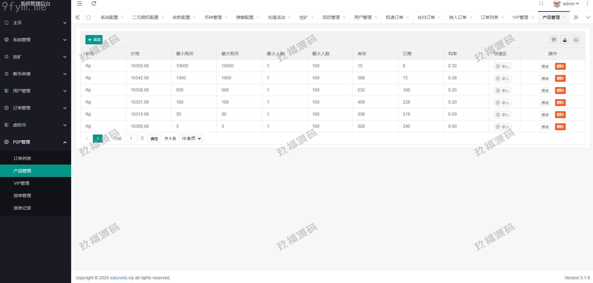 系统新增p2p理财功能、派单抢单功能,支持锁仓质押、三级分销、下单限制等功能