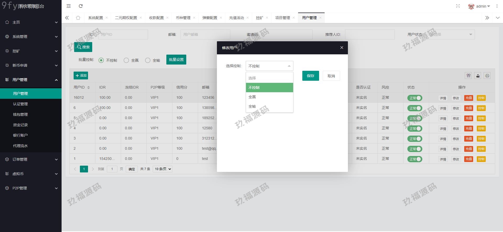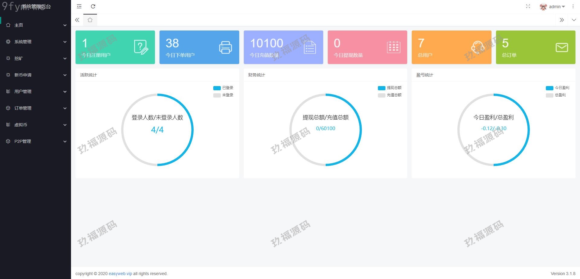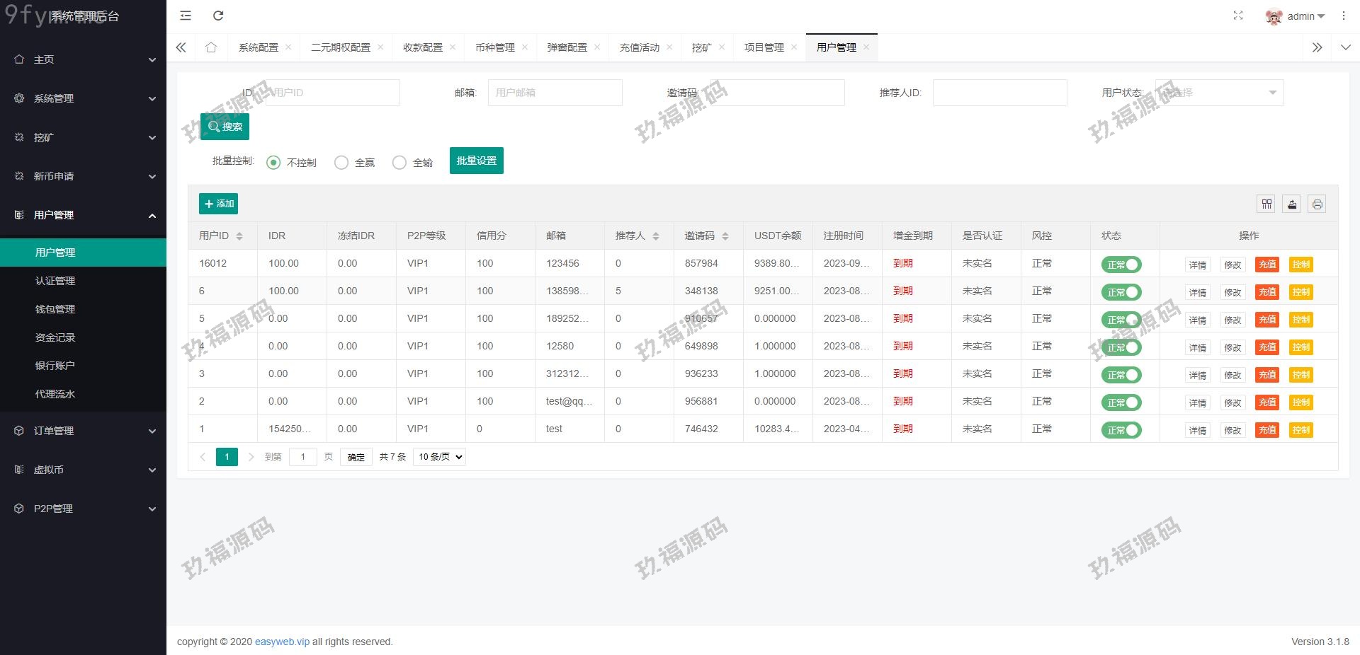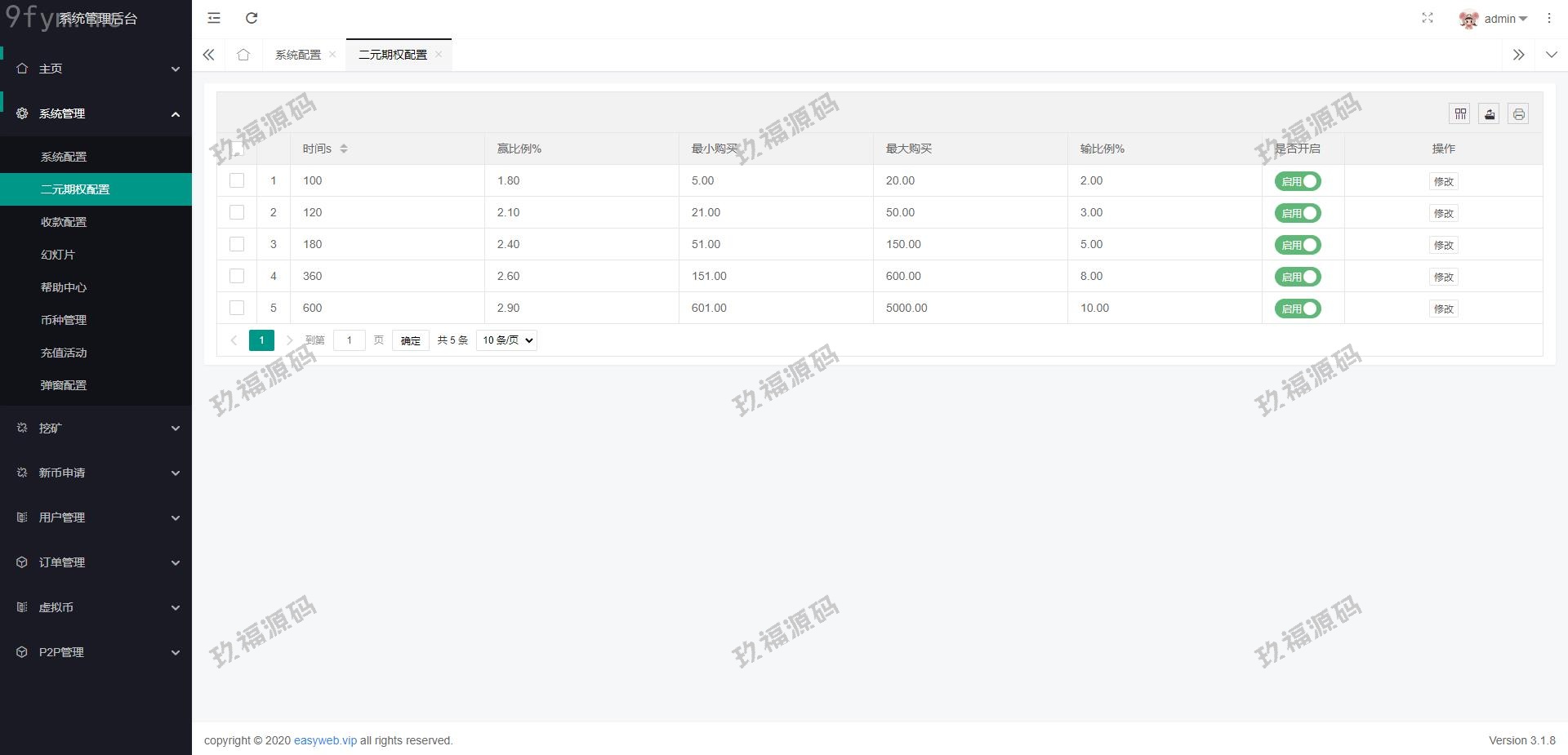系统新增p2p理财功能、派单抢单功能,支持锁仓质押、三级分销、下单限制等功能