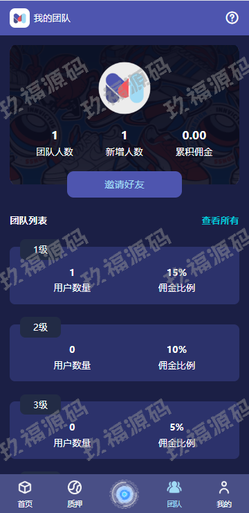 11、支持三级分销,下级质押上级能获得对应百分比奖励